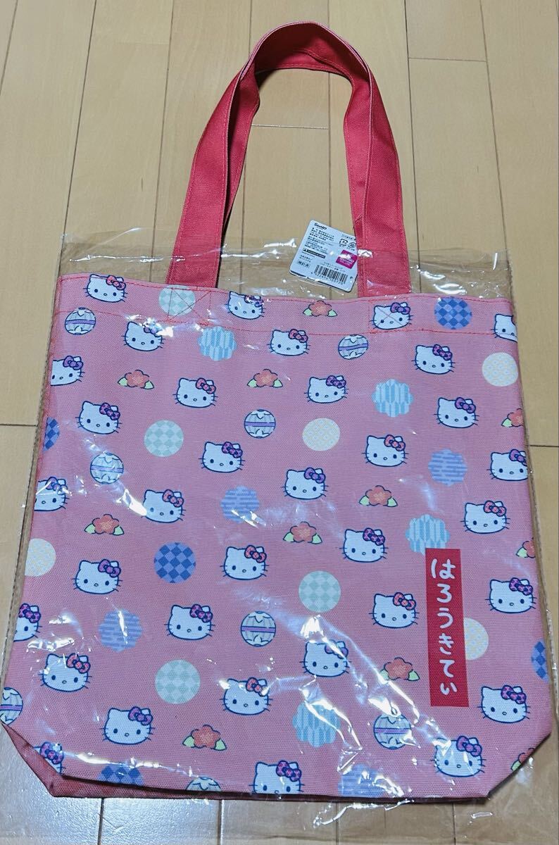 ハローキティの可愛い和風デザインのトートバッグ、ポリエステル製で軽量。