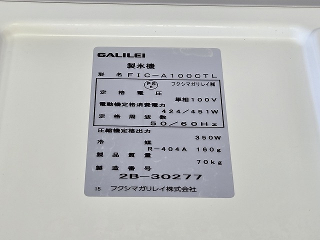 | 貯氷量 | 自然落下時貯氷量:43kg 通常ストック量:63kg |