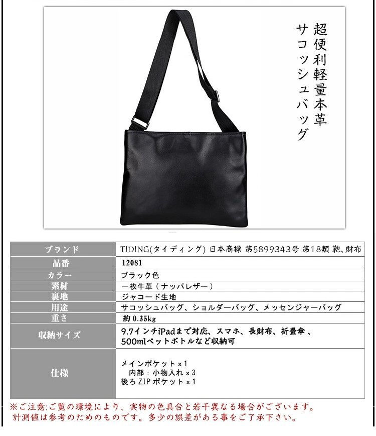 TIDING 超シンプル 使い放題 ナッパレザー 本革 レディース ショルダーバッグ サコッシュバッグ メッセンジャーバッグ iPad 自転車 潮牛
