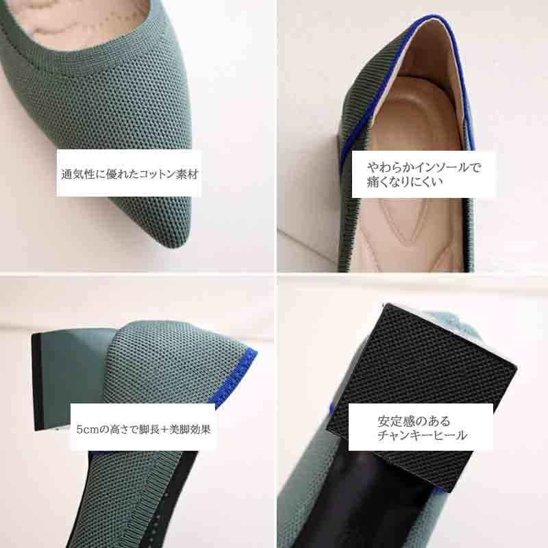 ・足を綺麗に見せるポインテッドトゥパンプス。