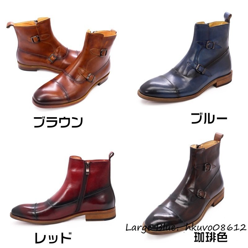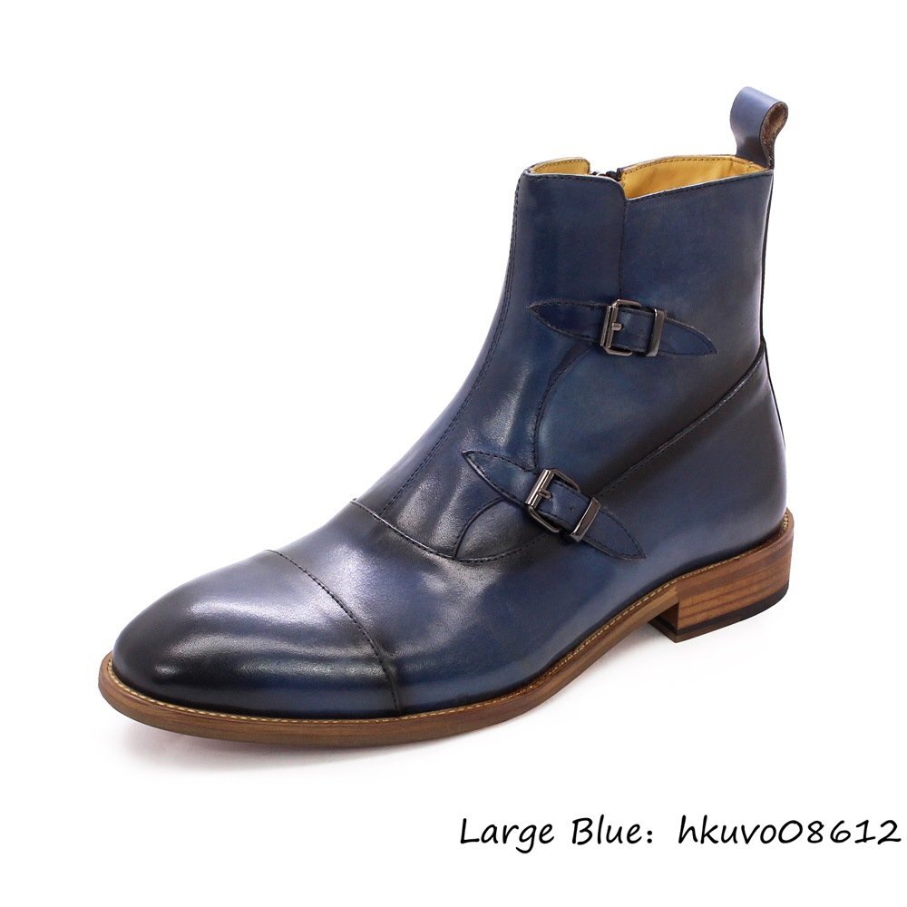 定価12万■ショートブーツ 最高級エンジニアブーツ マーティンブーツ 牛革ビジネスシューズ 職人手作り 本革 レザーブーツ ブルー 27.5cm