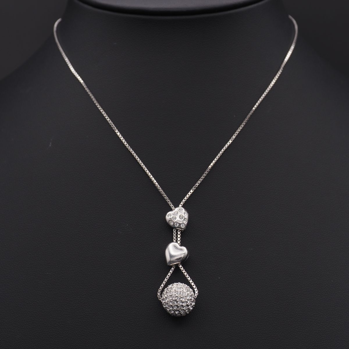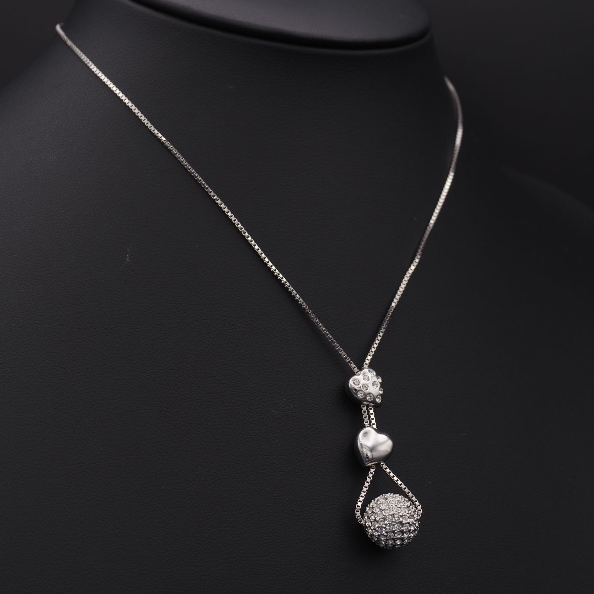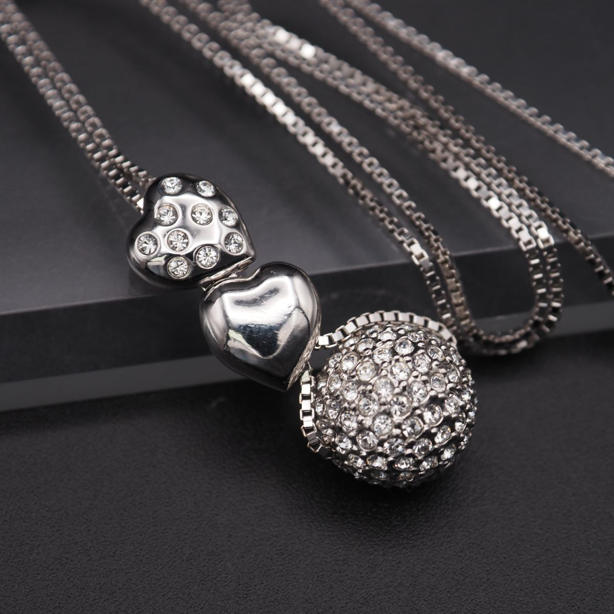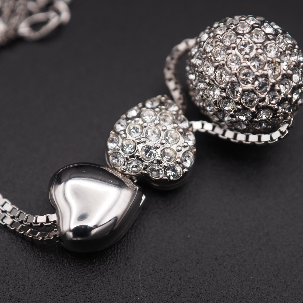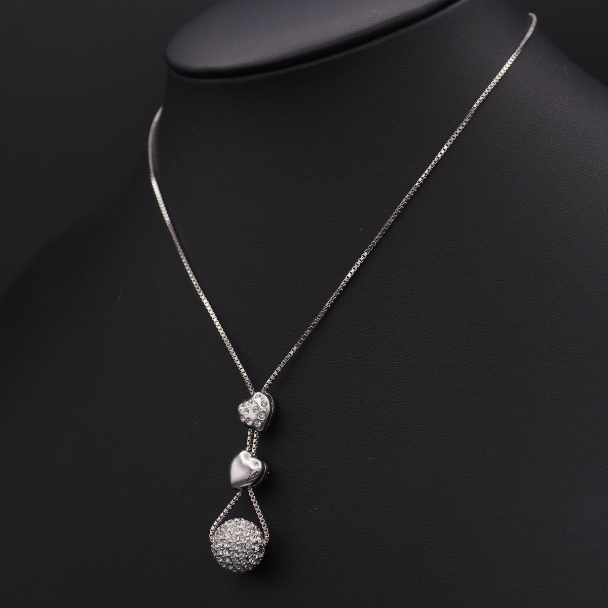 J938 スワロフスキー SWAROVSKI ペンダント ネックレス 3連チャーム ハート ラインストーン デザイン シルバー
