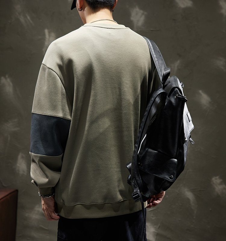 イタリア製 メンズ春物 長袖Tシャツ ビッグサイズ ゆったり ストリートカジュアル コットンポリエステル混紡 SIZE:M fz80