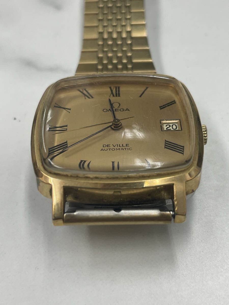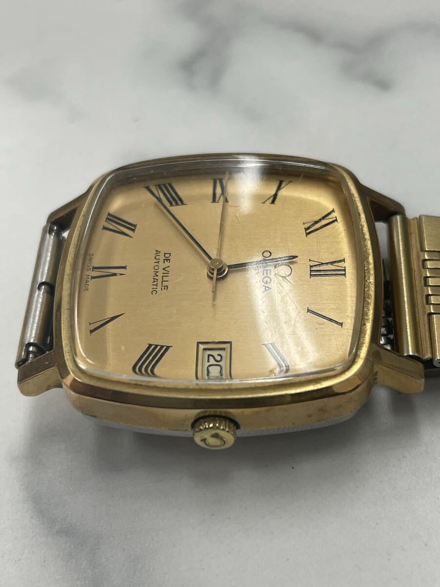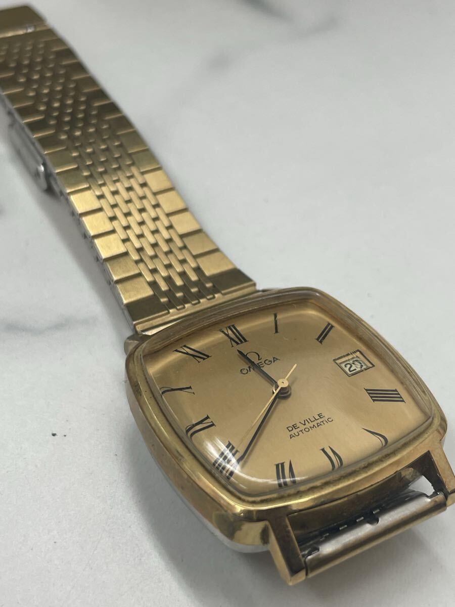 20.稼働品・OMEGA DE VILLE オメガ デビル 手巻き 自動巻き メンズ 腕時計 角型 全数字文字盤 デイト ゴールド//OO35
