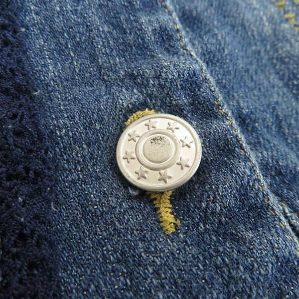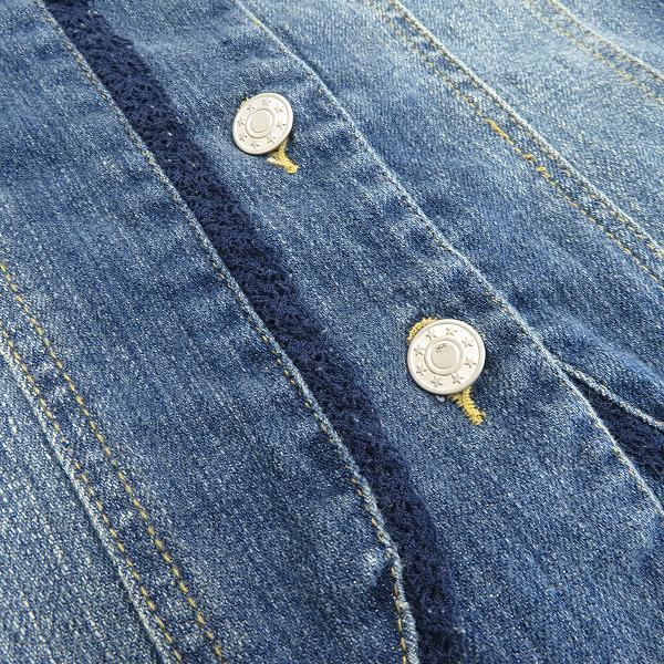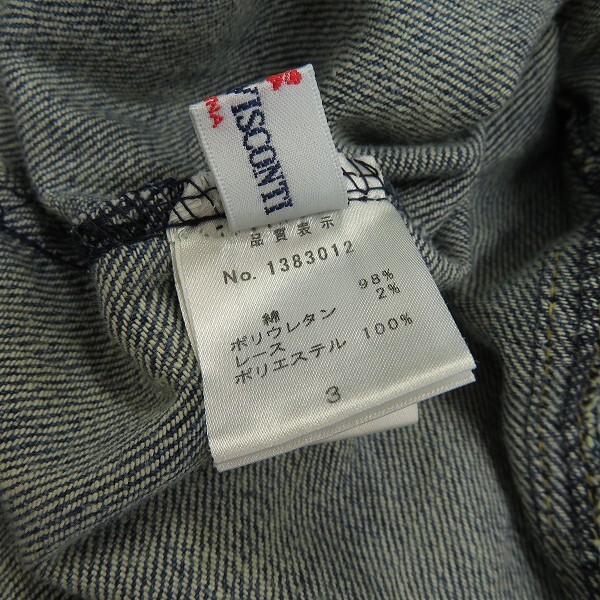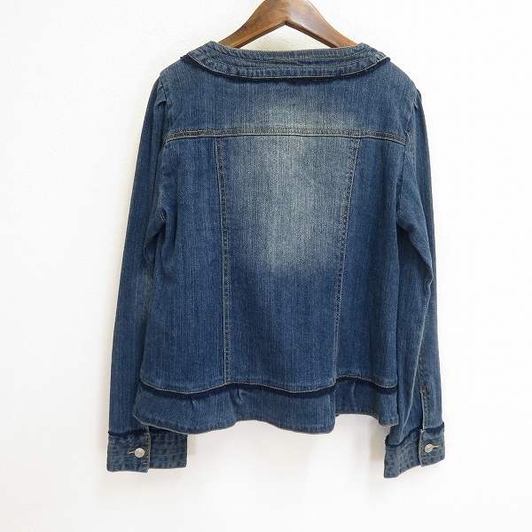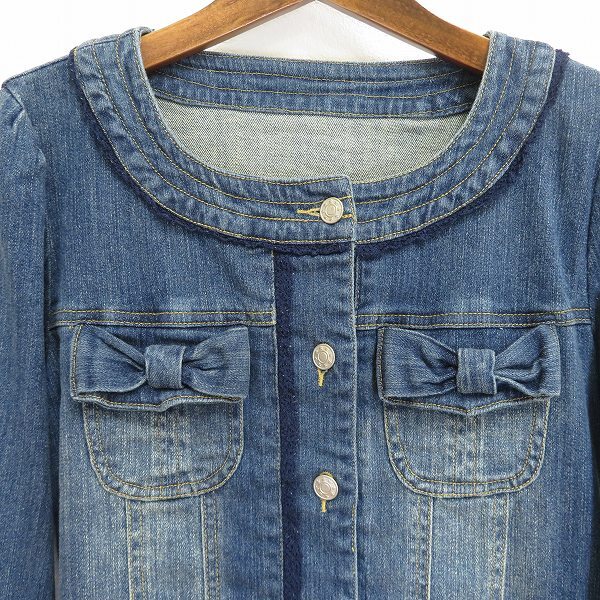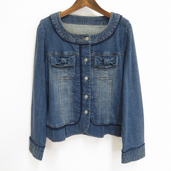 #a ギャラリービスコンティ GALLERY VISCONTI デニム ジャケット 3 青 Gジャン ノーカラー リボン レース Lサイズ 920626 k01