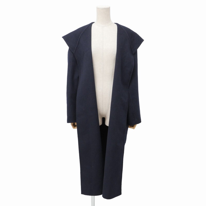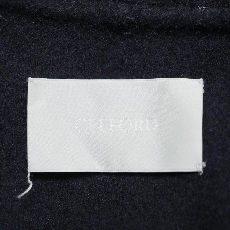 | TJ7845★CELFORD セルフォード ビッグフードリバーコート フーディーコート ロングコート ネイビー サイズ38 ウール CWFC195005 | |||