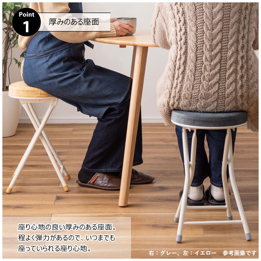 程よい弾力で、作業用・来客用・丸椅子として幅広く使えます。
