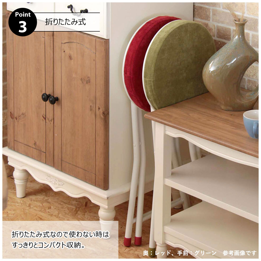 折りたためば省スペースになり、リビングや玄関などの隙間にすっきり収納。