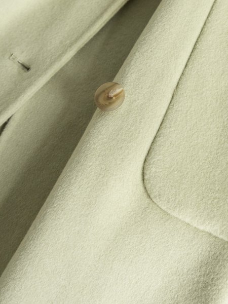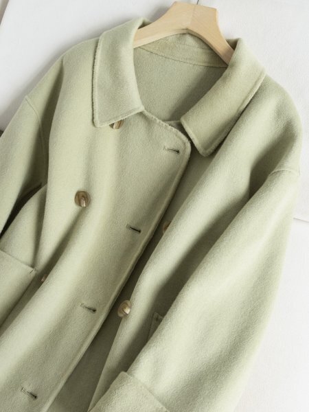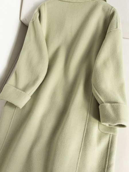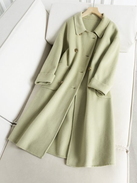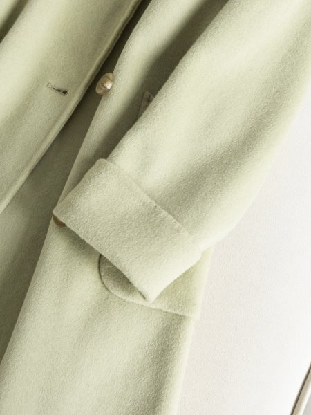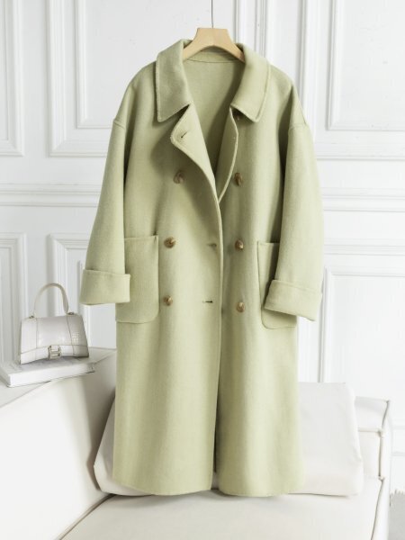 チェスターコート ウール混 柔らか 保温 ソフト ダブルブレスト ロング丈 折り襟 エレガント カジュアル グリーン Sサイズ xfz82.S