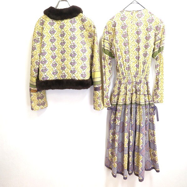 #wu ワンダフルワールド WONDERFUL WORLD カネコイサオ セットアップ ジャケット ワンピース 薔薇柄 ムートン チャイナ [970692] k01