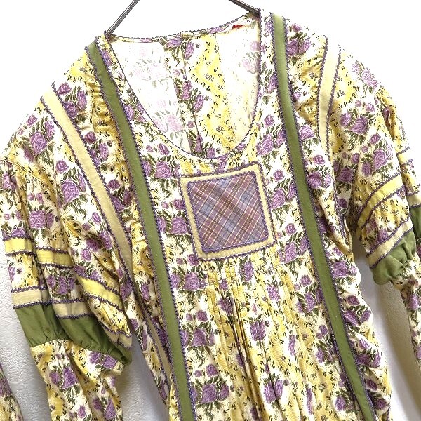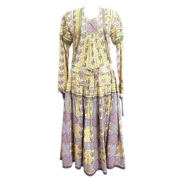 ●商品コメント:ワンピースのウエストはゴム入りで、紐で絞れるようになったデザインです。★当店の商品はすべてリユースアイテムとなります。特質上、些細なダメージは記載しておりませんので着用に問題のない使用感、着古した雰囲気などはご了承くださいませ。