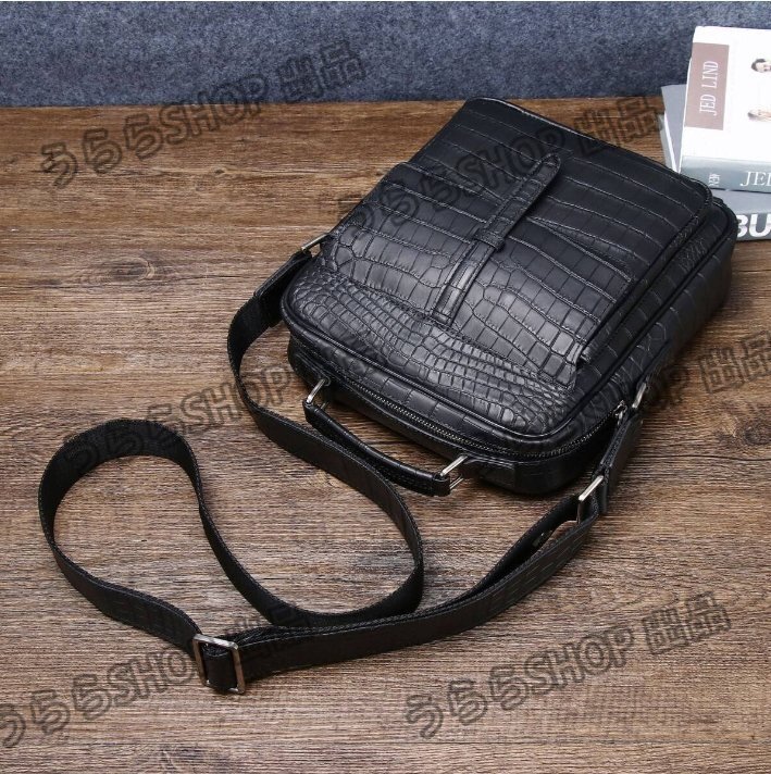 マット仕上げ クロコダイル本革 ワニ革 メンズ ショルダーバッグ 肩掛け メッセンジャーバッグ 斜めがけ 腹部革 センター取り xhw0165