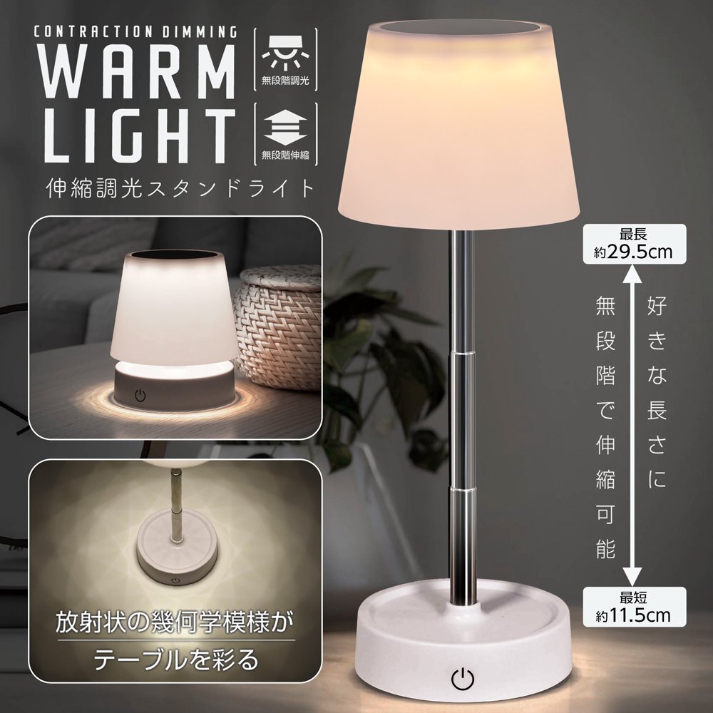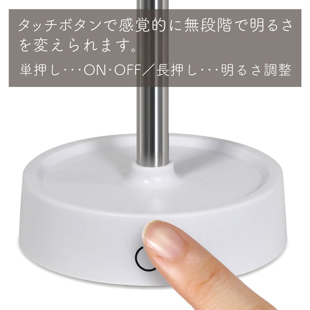 | お好みの高さに調節できるデスクライト。 タッチボタンで感覚的に調光が可能。 |