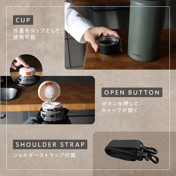 水筒 1120ml 大容量 おしゃれ コップ 持ち手付き 保温 保冷 真空 ステンレス ショルダーストラップ付き 送料無料- 60N◇ ピクニックボトル