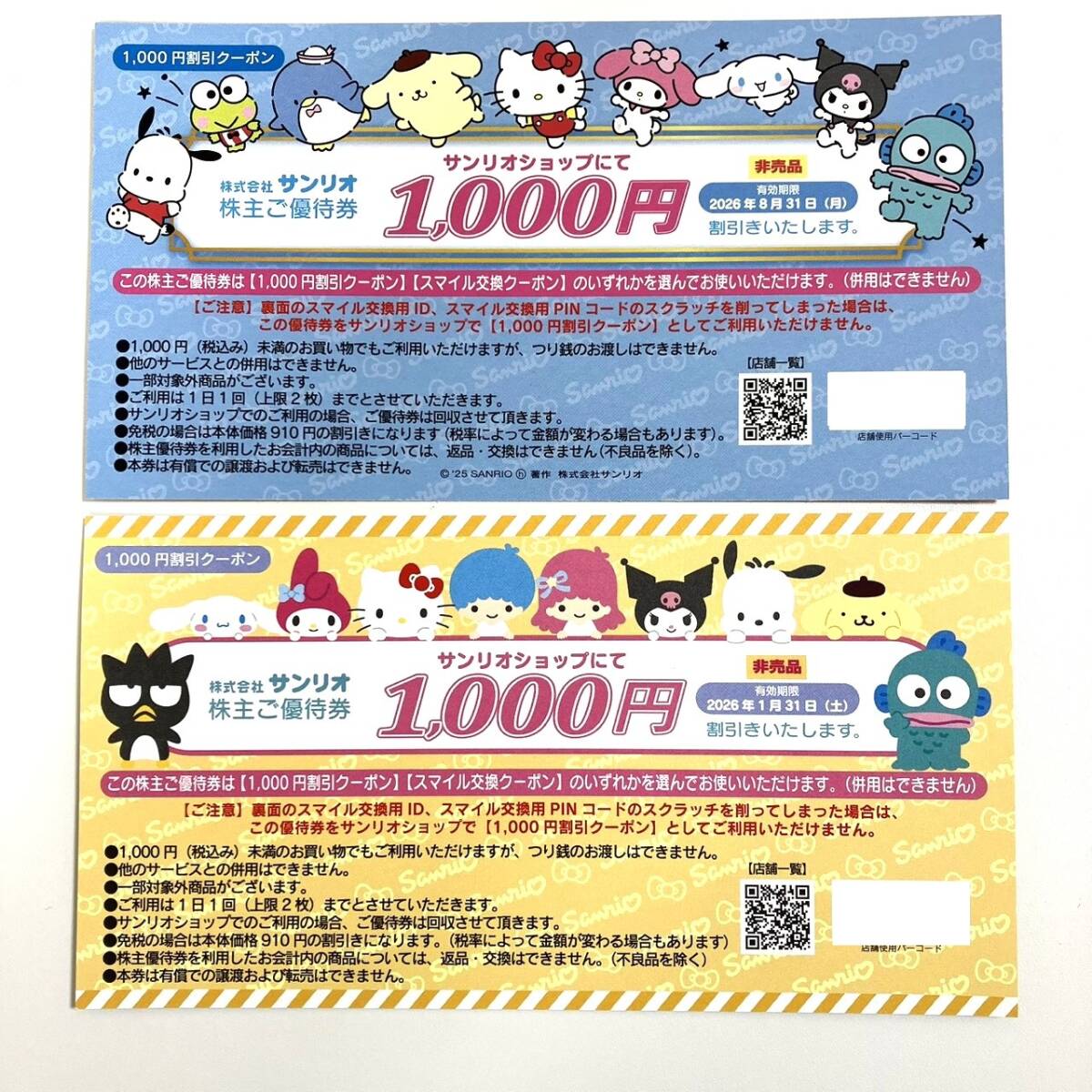 サンリオ 株主優待券 入場券1枚 1000円割引券・スマイル交換クーポン2枚