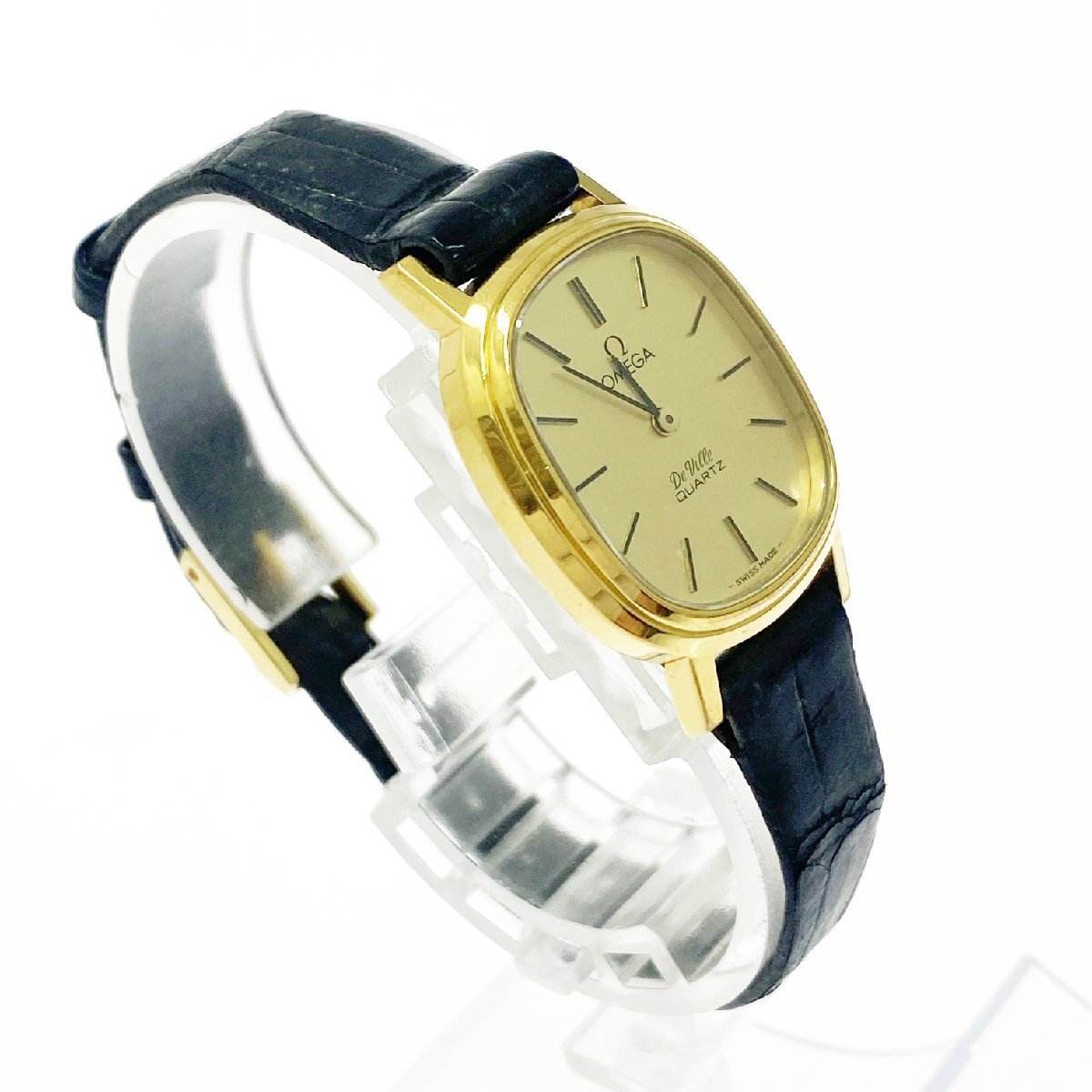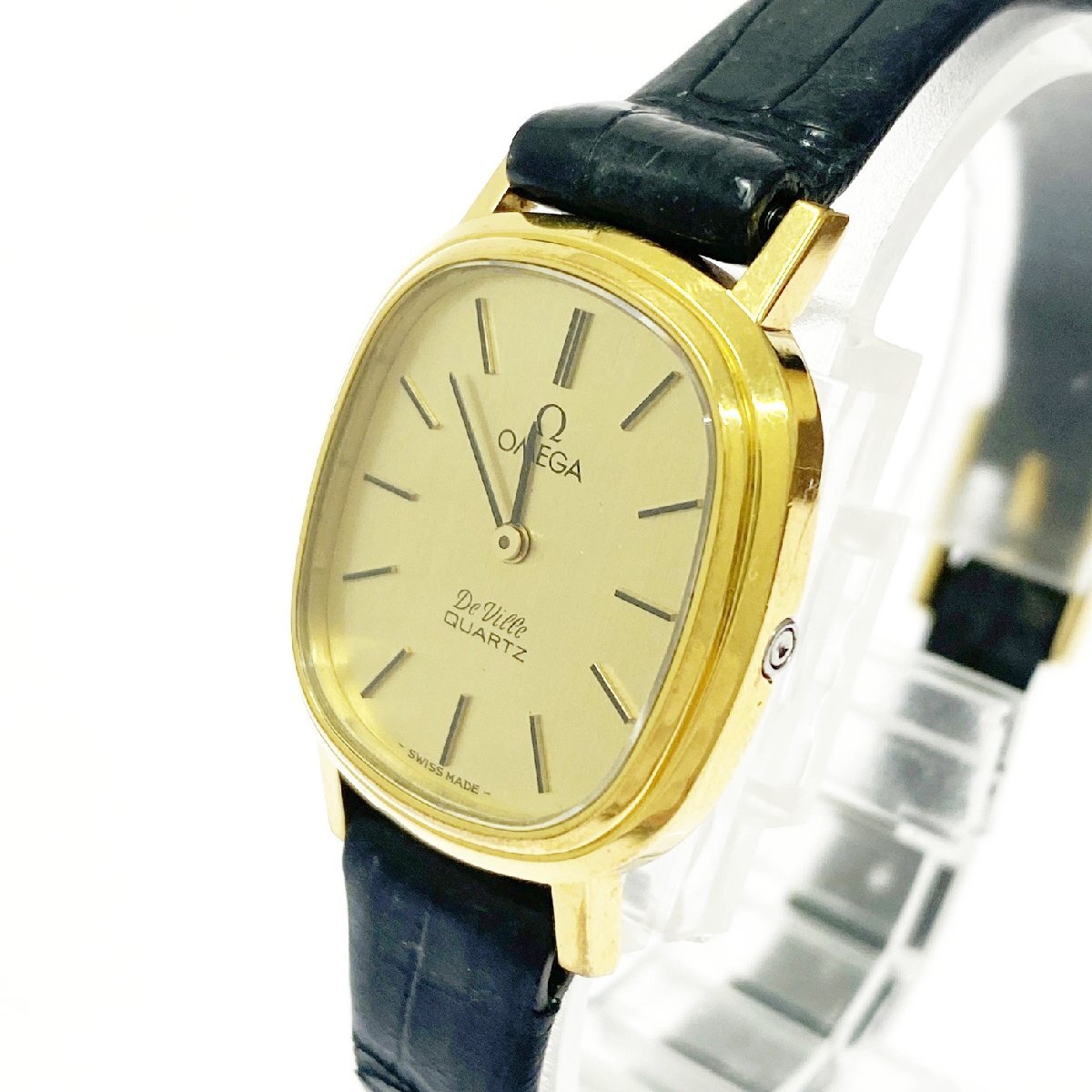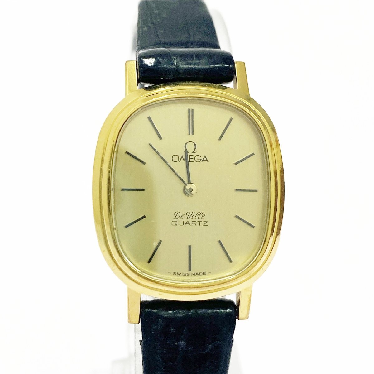 【1円スタート】OMEGA オメガ 1350 デビル GP×SS ゴールド文字盤 プッシュ式 クオーツ レディース腕時計 529064