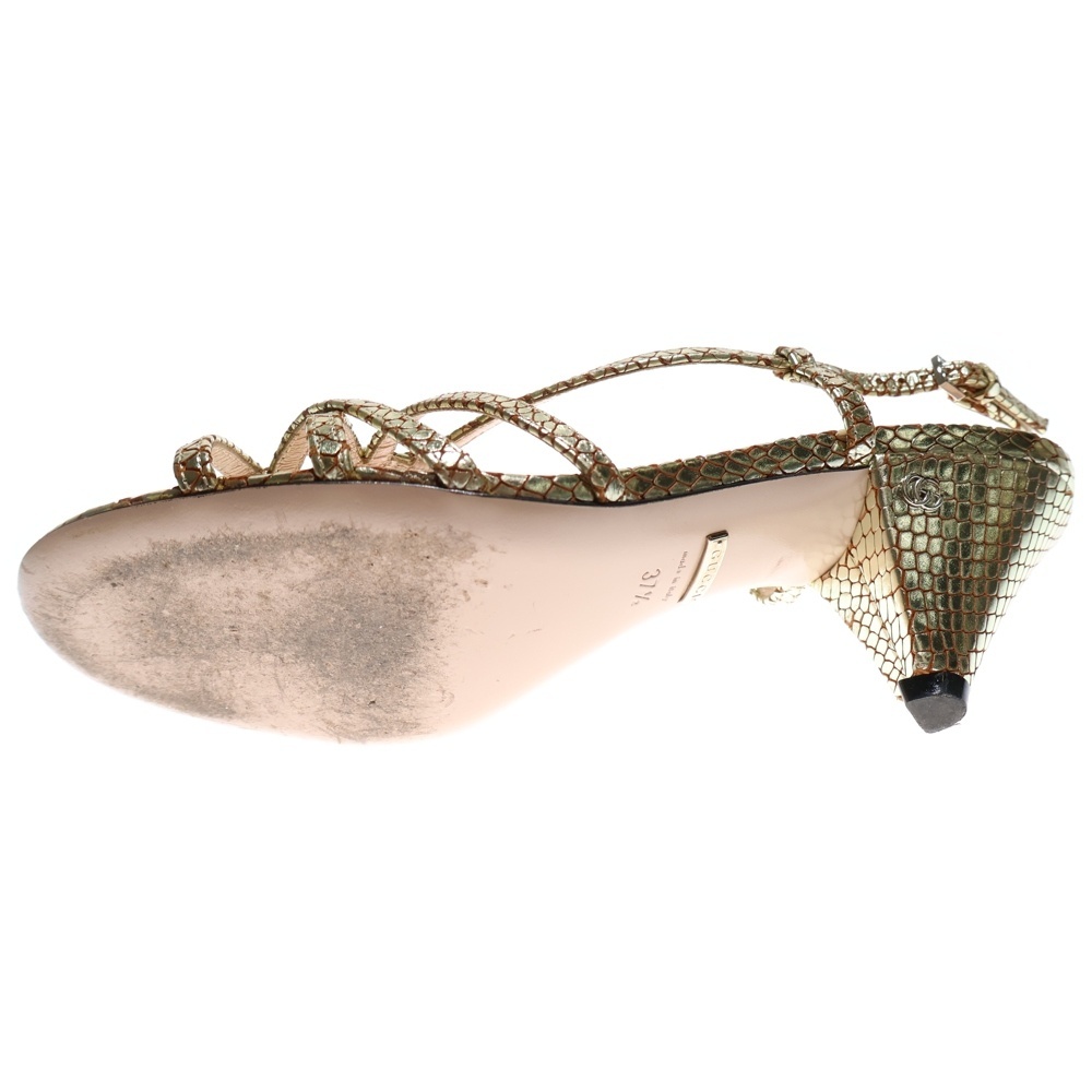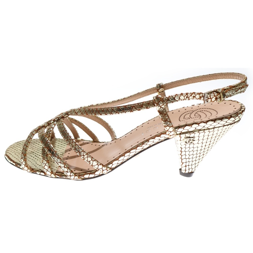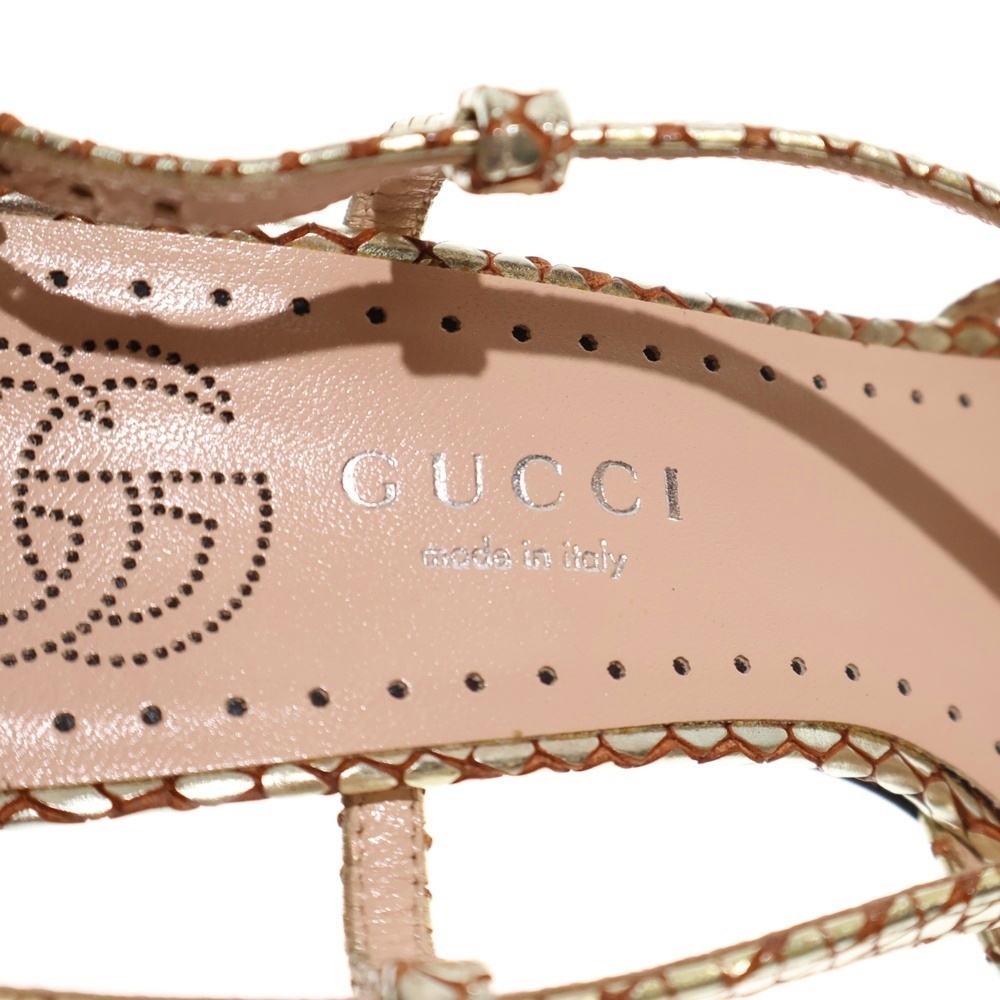 GUCCI グッチ 型押し GGロゴ ストラップ ヒール サンダル ミュール ゴールド レディース