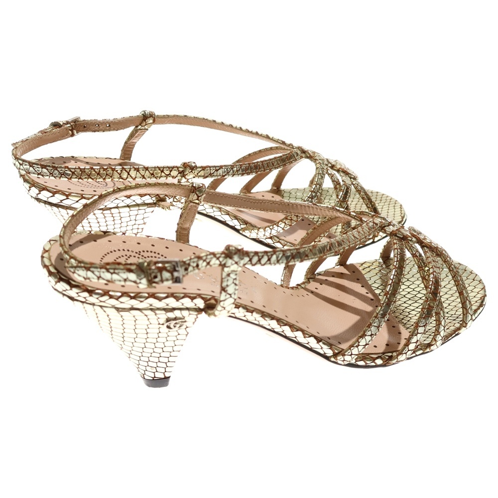 品名型押し GGロゴ ストラップ ヒール サンダル ミュール ゴールド レディース
