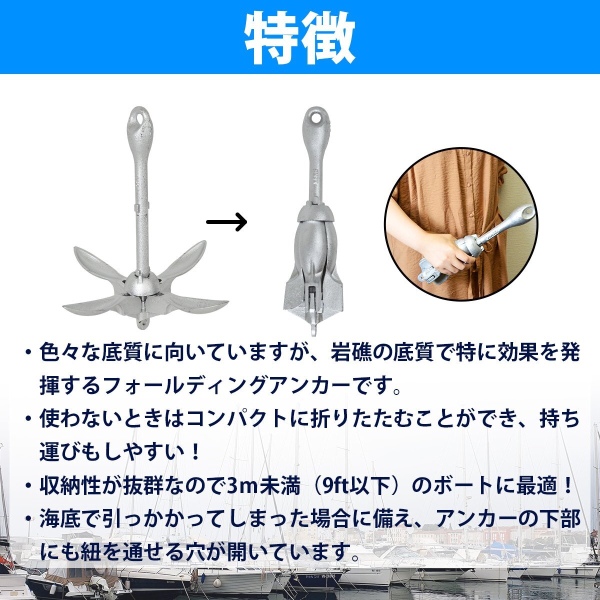 【送料無料】フォールディングアンカー 2.5kg 2.5キロ ホールディング シー アンカー ジェットスキー 小型 船舶 船 碇 錘 岩礁 等に