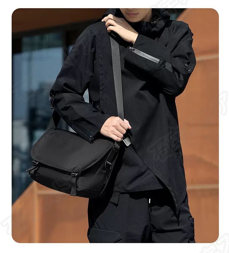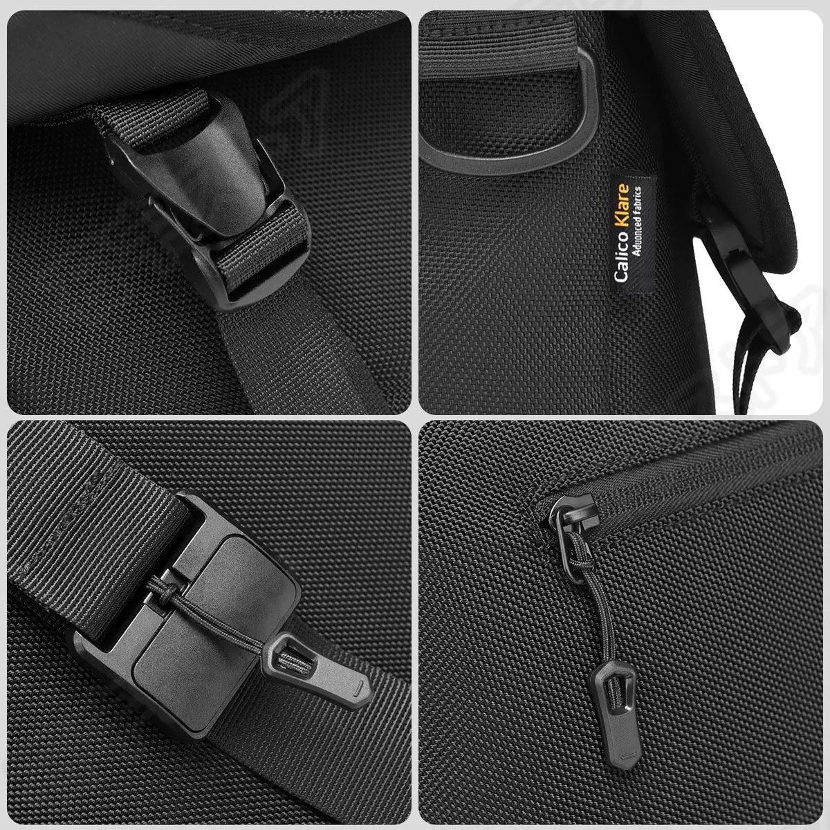 蓋には2個のバックルが付いており、ワンタッチで簡単に着脱できる仕様になっています。ショルダーストラップは調整可能なので、お好みの長さにも自由自在です。蓋の下には2つファスナーポケットがあり、お物を収納できます。メインポッケトの内側には中身の整頓に便利な1つ大容量オープンポケット、1つメッシュポッケト、ペンポケット、IDポケットと9.7インチPC柔軟な収納部付きです。背面には1つファスナーポケットを配置、荷物が取り出せる便利。おIPad、財布、傘、手帳、鍵、貴重品などを収納可能です。