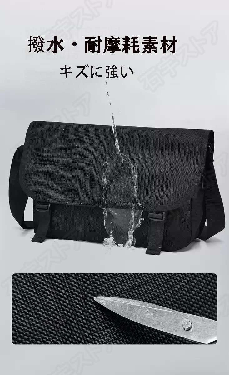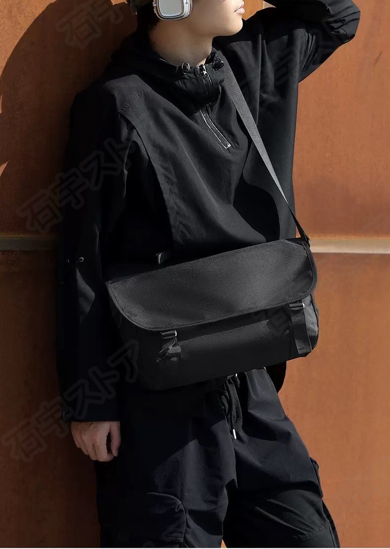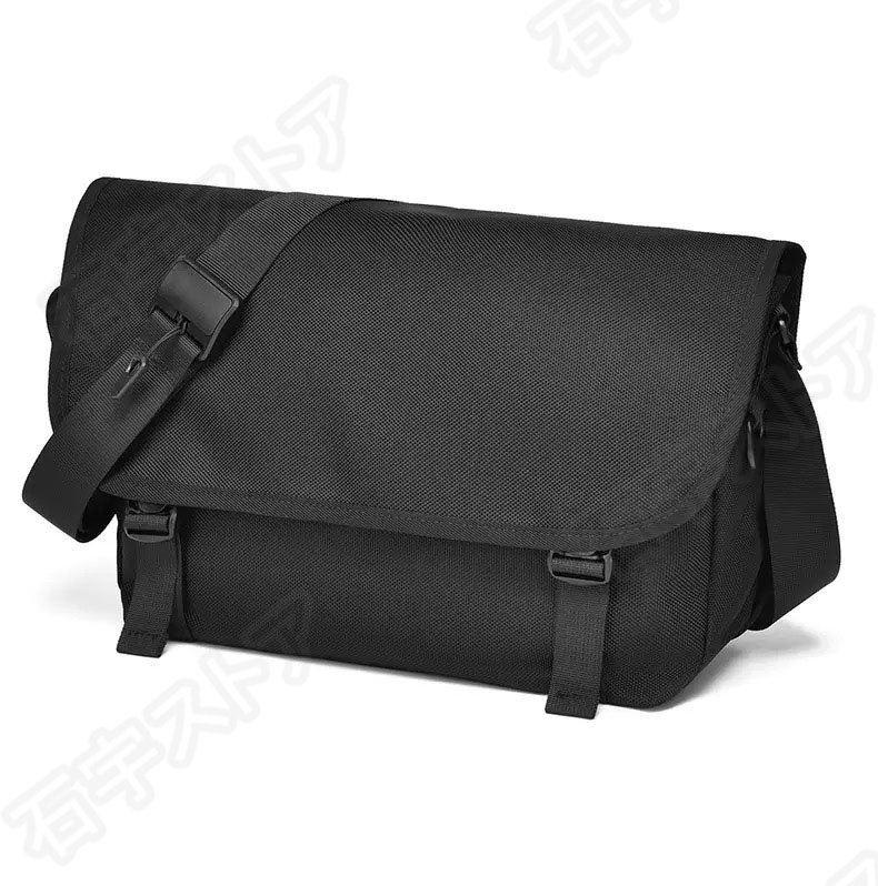 ショルダーバッグ 大容量 メッセンジャーバッグ 撥水加工 9.7インチPC収納 斜めがけ ビジネス 通勤 通学 旅行 ブラック shw338