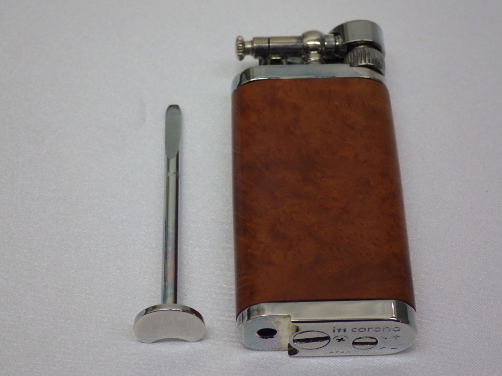 着火確認済み im corona イムコロナ ハンマー式 フリント オールドボーイ パイプライター ガスライター シルバー×木目調