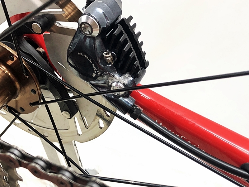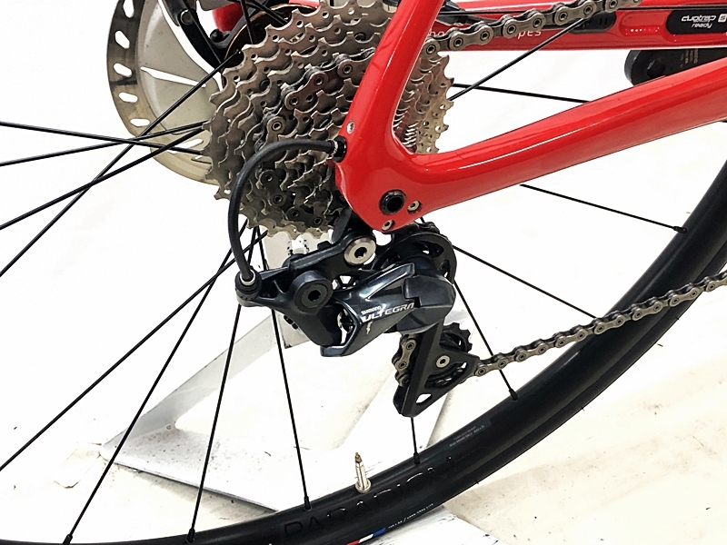フレーム、その他外観:右エンド内側、フォークエンド、リアディレイラー、STIレバー、ハンドル、サドル、マストキャップに傷があります。ホイール、クランクに小キズがあります。リアキャリパーのオイルに劣化があります。