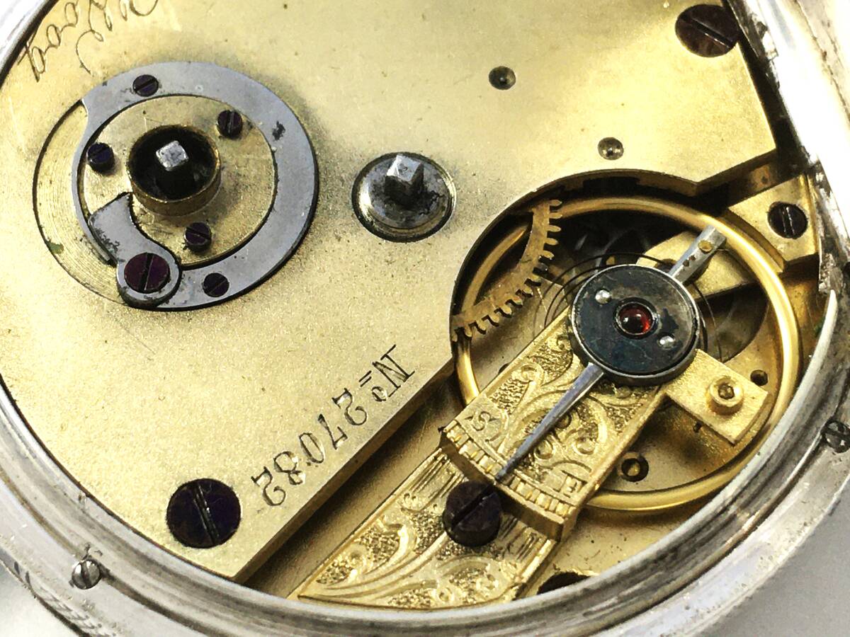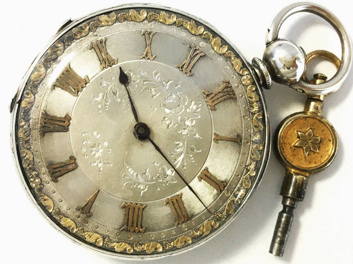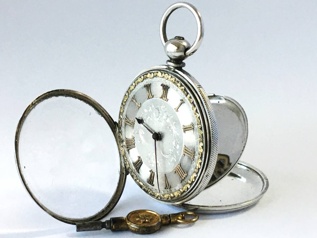 今から約125年前の1900年頃に製造された、スイス鍵巻き懐中時計です。