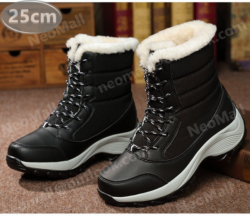レディース スノーシューズ 【968】 ブラック 25.0cm ムートンブーツ スニーカー ウィンターブーツ 裏起毛 防水 防寒 防滑 冬用靴 綿靴