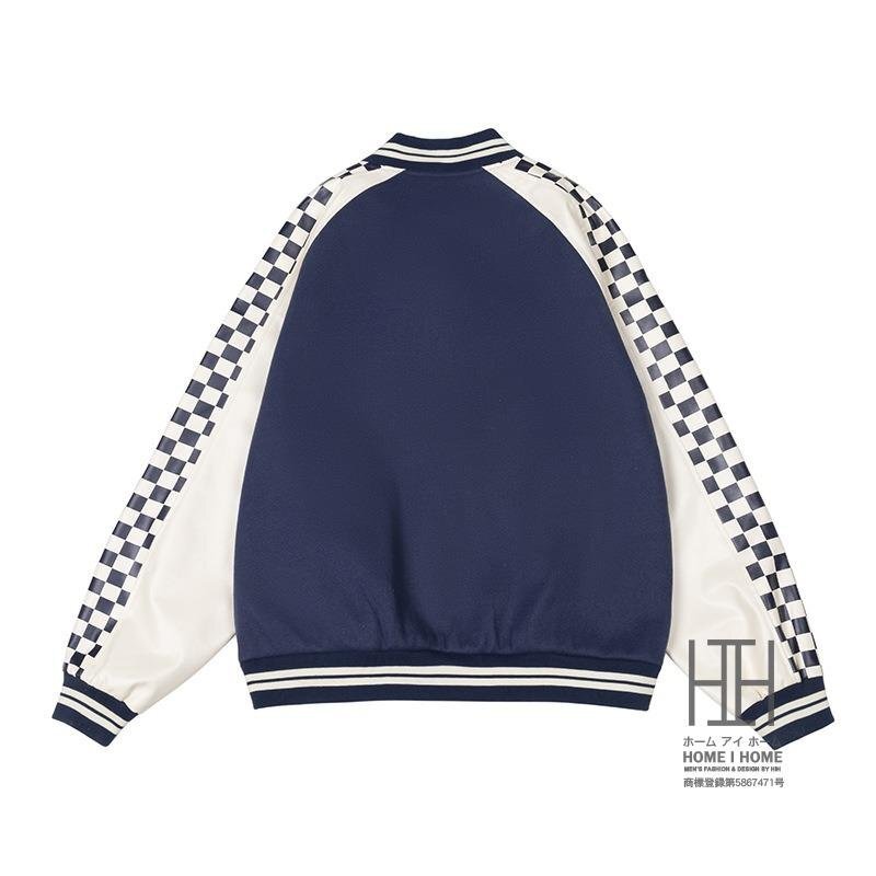 ジャケット スタジャン 切り替え アウター ワッペン チェック スポーティ ゆったり カジュアル ストリート メンズ 男女兼用 暖かい スタイリッシュ 冬