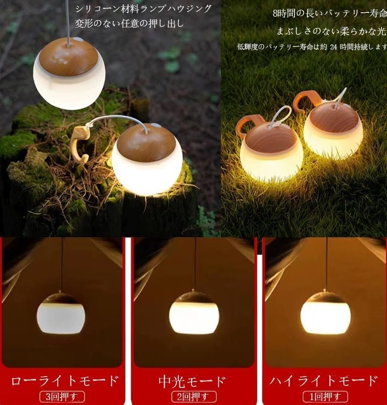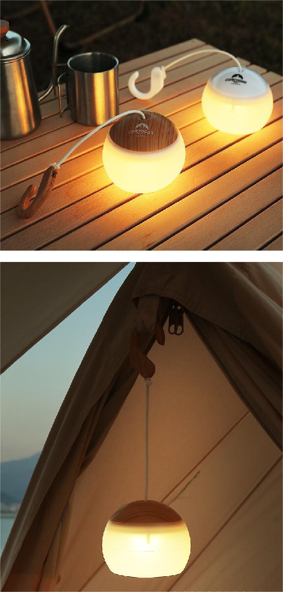 LEDランタンを使っていると癒される一番の理由は、ランタン自体が丸っこいデザインであり、ぱっと見たところ風鈴のようで、見た目も灯っている姿もかわいいです。2ルームテントのリビングと寝室で使用しています 6~7畳の部屋なら十分な明るさです 光源は冷光/暖光で明るさは3段階で長押しで切り替え可能です光源,充電中は赤いライトが点滅し、完全に充電されるとライトが緑色に変わります
