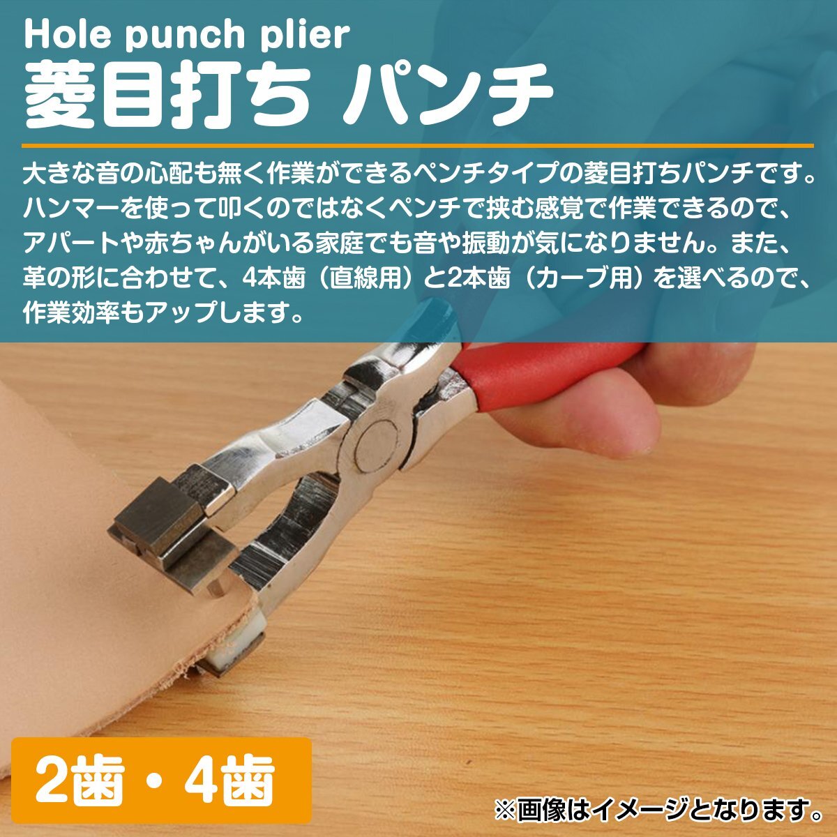 【送料250円】菱目打ち 穴あけ パンチ 2歯 4歯 革細工 レザークラフト 工具 ツール 手芸 専用針 ペンチ タイプ レザー 革 穴 2穴 4穴 静音