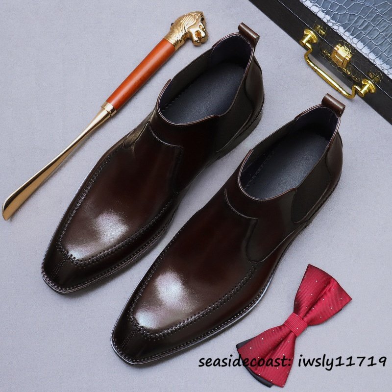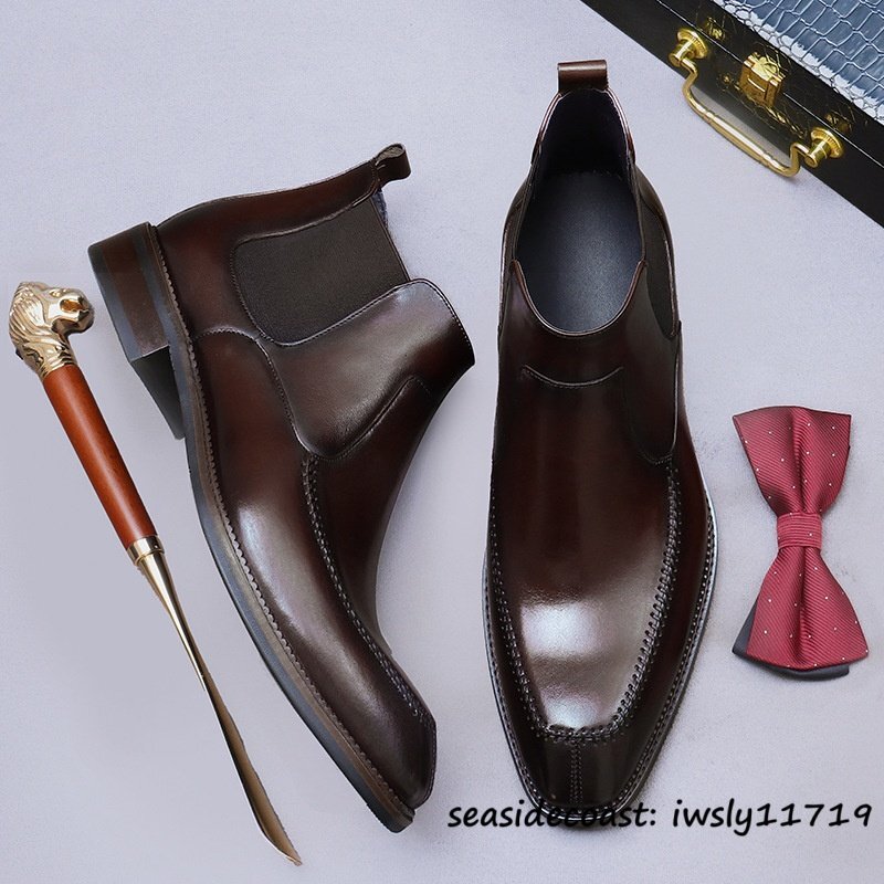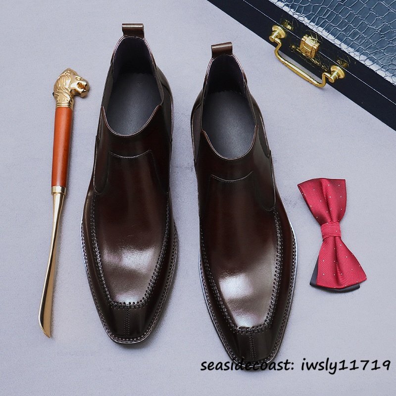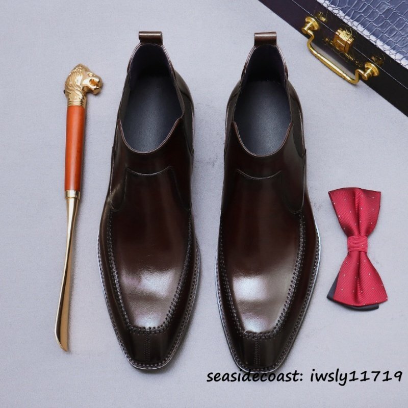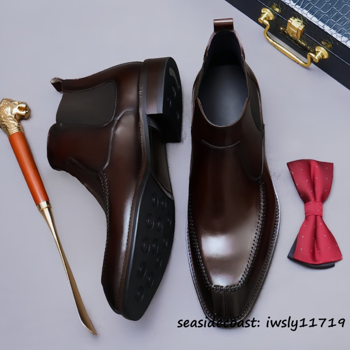 定価16万超*マーティンブーツ 最上級 メンズ 本革 ハイカット ビジネスシューズ 職人手作り ショートブーツ 高級牛革 皮靴 珈琲色 27.5cm