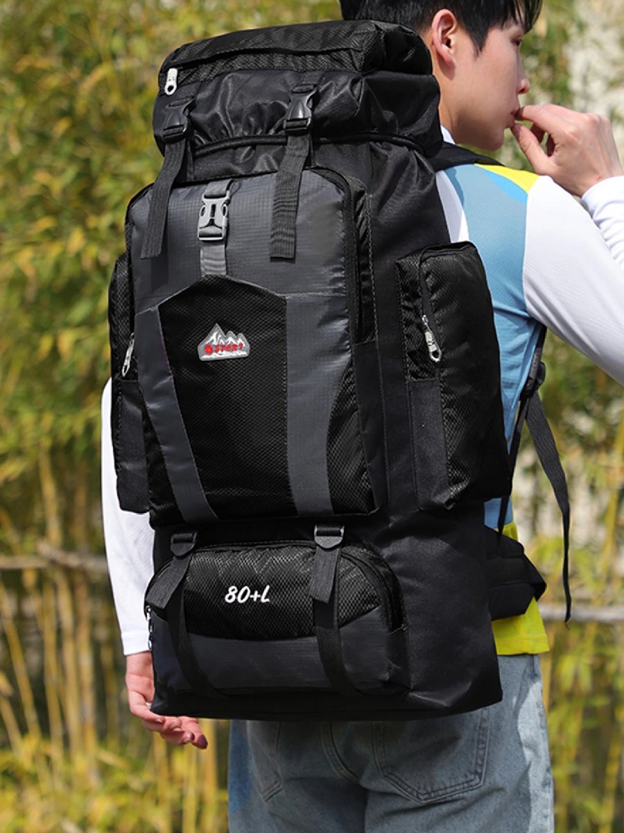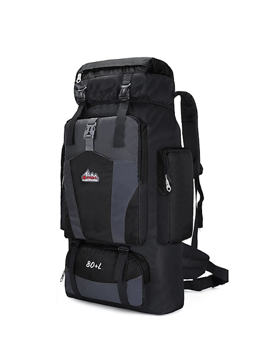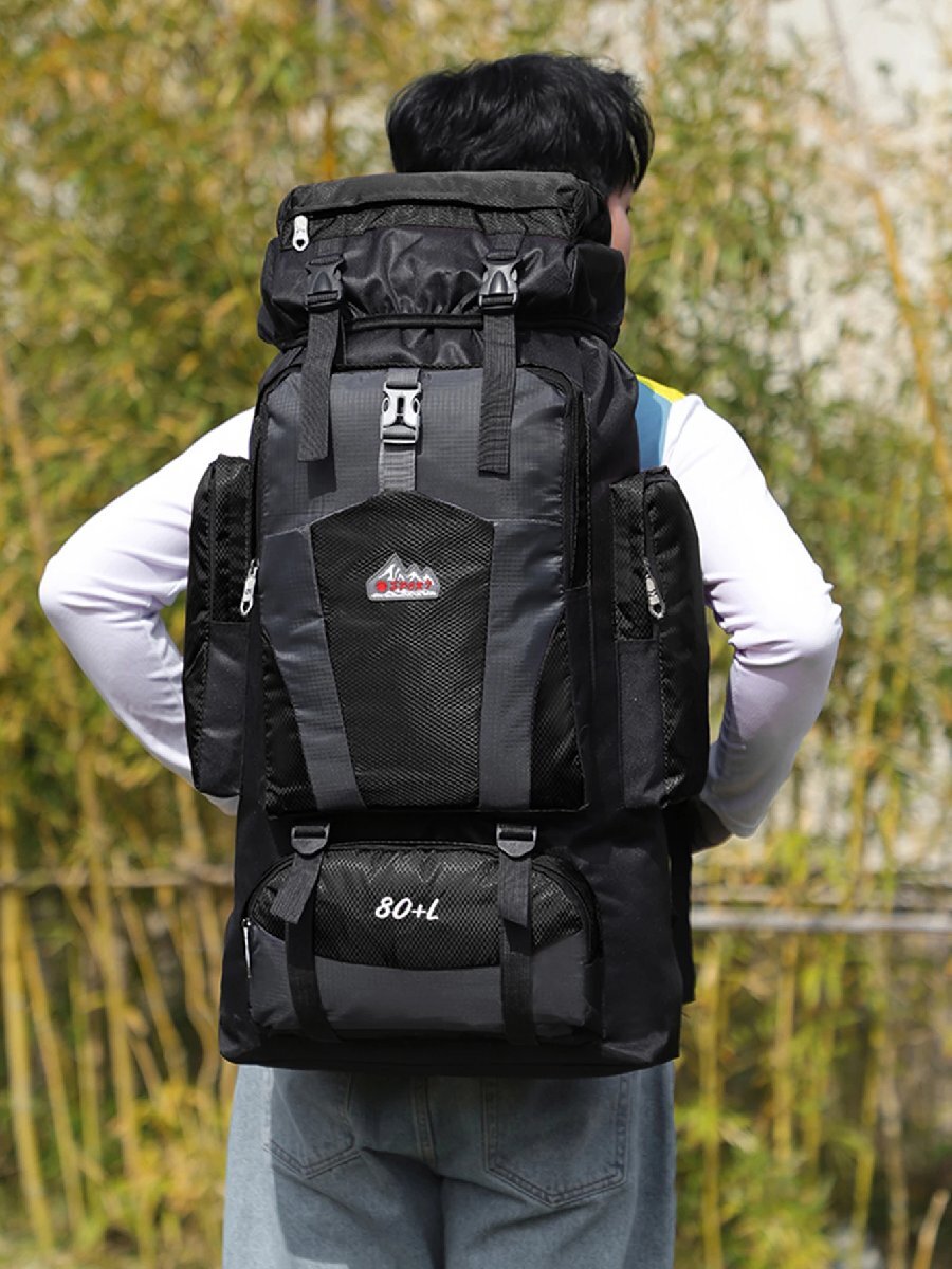 アウトドア 80L 大容量 旅行 軽量 防水 バックパック 機能性 通気性 ハイキング トレッキング キャンプ ブラック  742