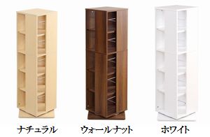 | 【ポイント】 くるくる回る回転式なので探しやすい! コンパクト設計だから省スペースにおけます。 本やDVDが約200冊収納できる大容量です。 カラーはインテリアに馴染む3色がございます。 |