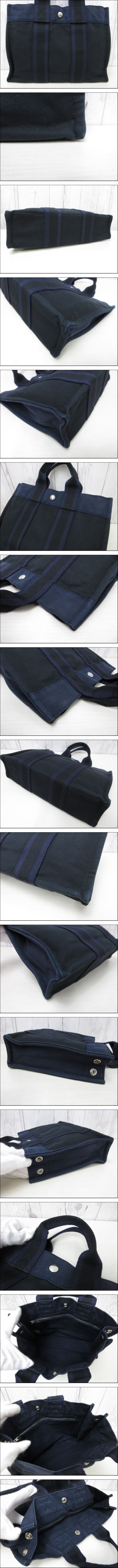 | 極美品 HERMES エルメス フールトゥPM ハンドバッグ トートバッグ バッグ キャンバス 黒×紺 95537 | ||
