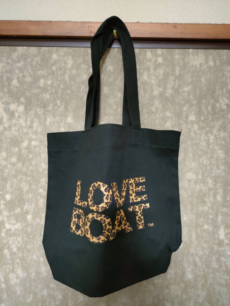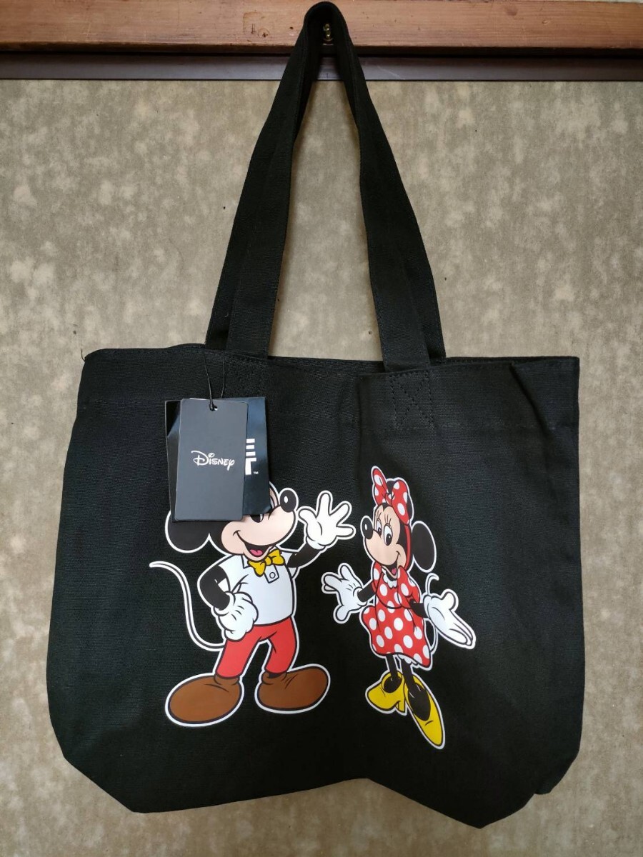 ラブボート&ミッキーとミニーのイラストがかわいい黒のトートバッグです。