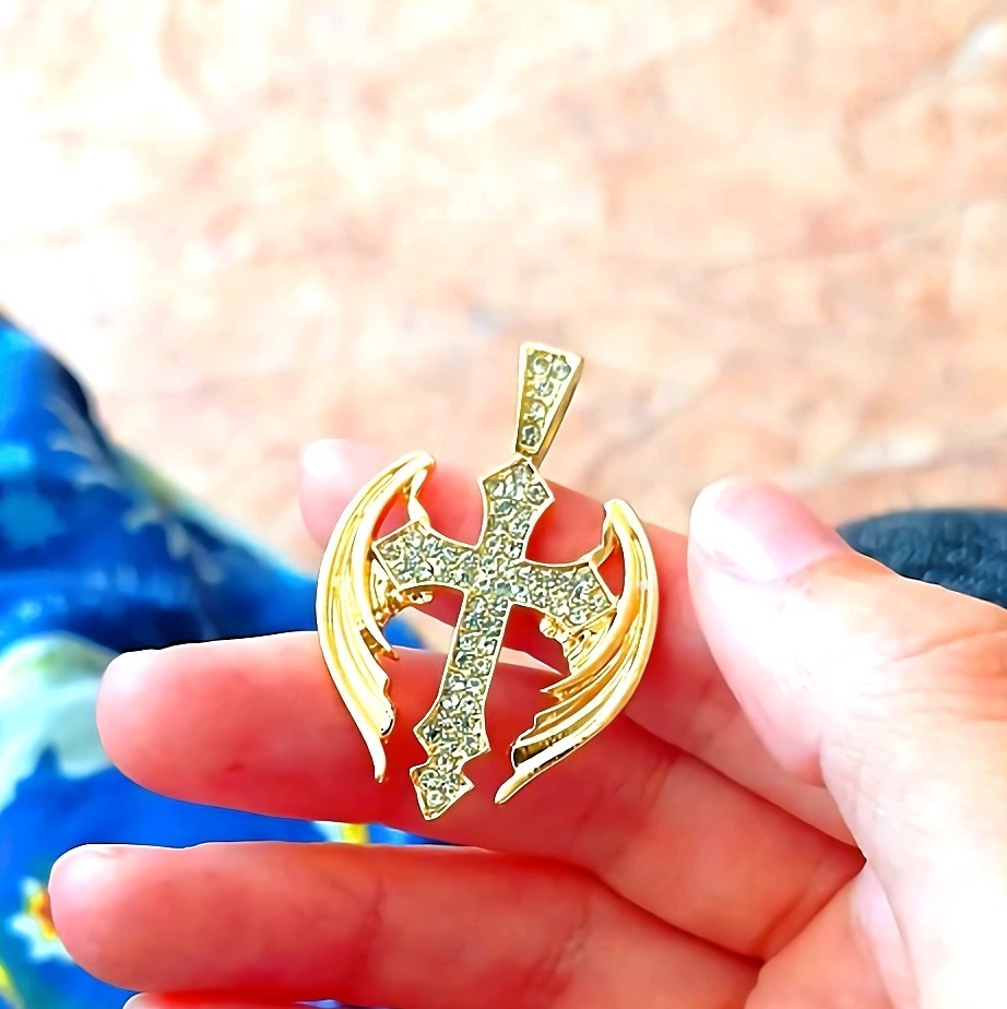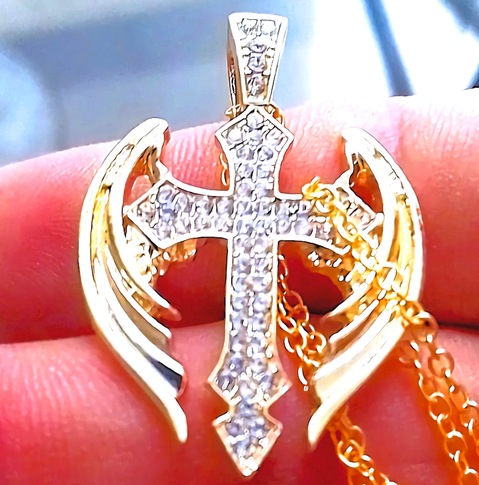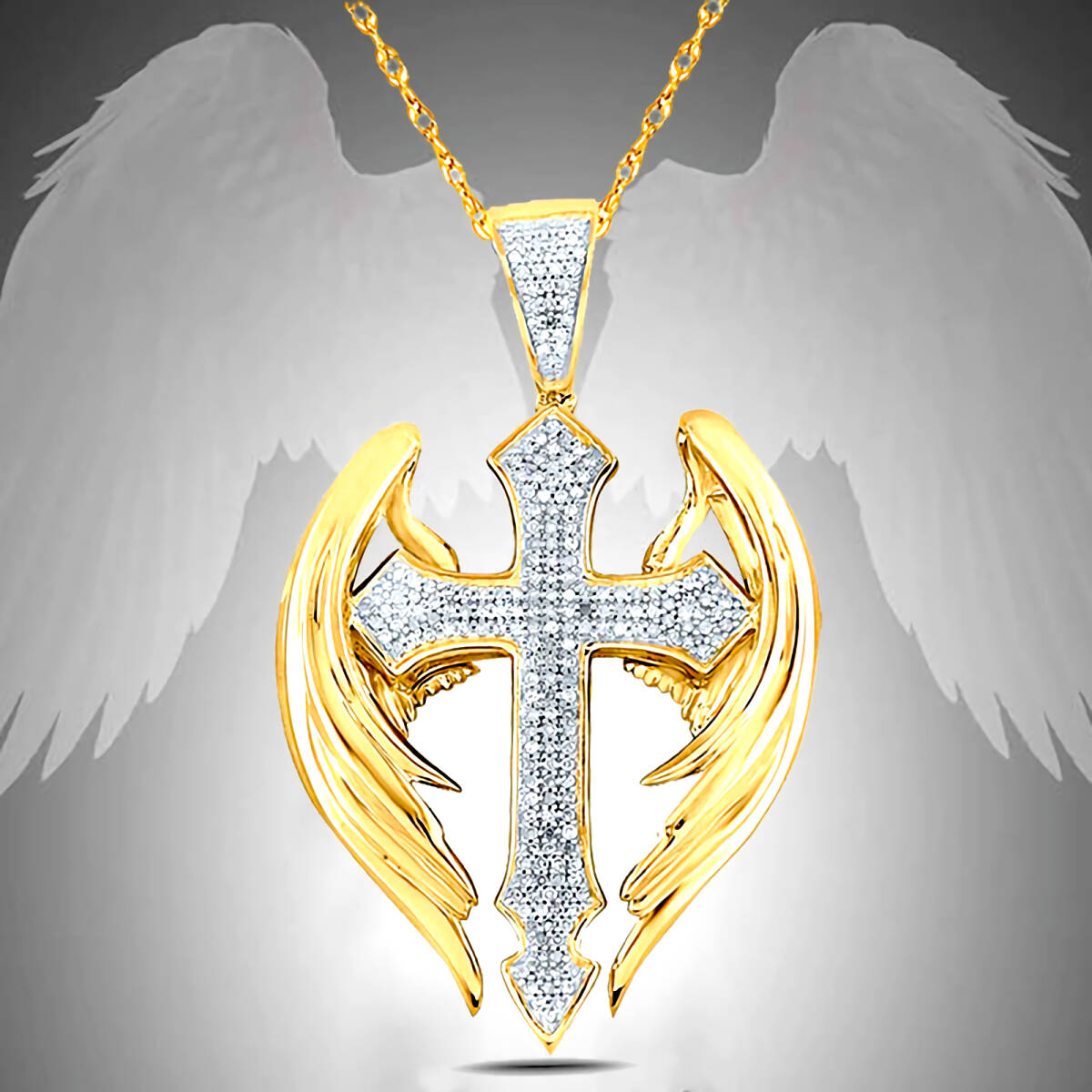 新品★送料無料★天使の羽 黄金の十字架クロス ダイヤモンド K18GFゴールドネックレス 誕生日プレゼント旅行連休春夏海ギフト国内発送