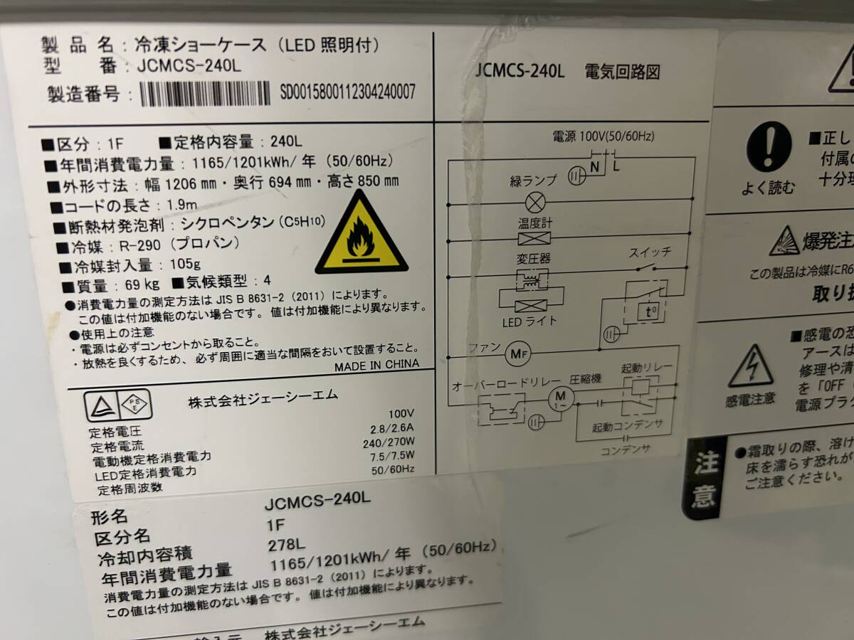 冷凍ショーケース『JCMCS-240L』LED照明付き ラウンド扉 冷凍庫 保冷庫 ストッカー 全容量240L 2023年製 | |