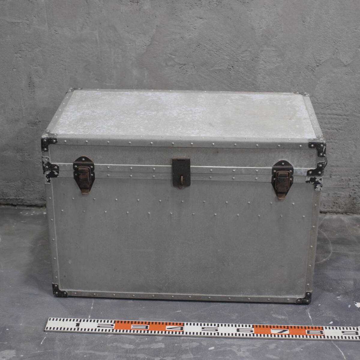 横幅81cm、奥行き45cm、高さ54cm(金具類含む) - Color: Silver - Type: Storage Chest - Features: Metal Handles and Latches - Condition: Used