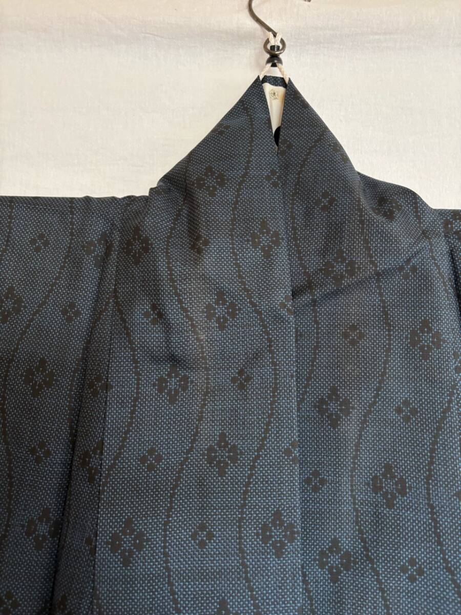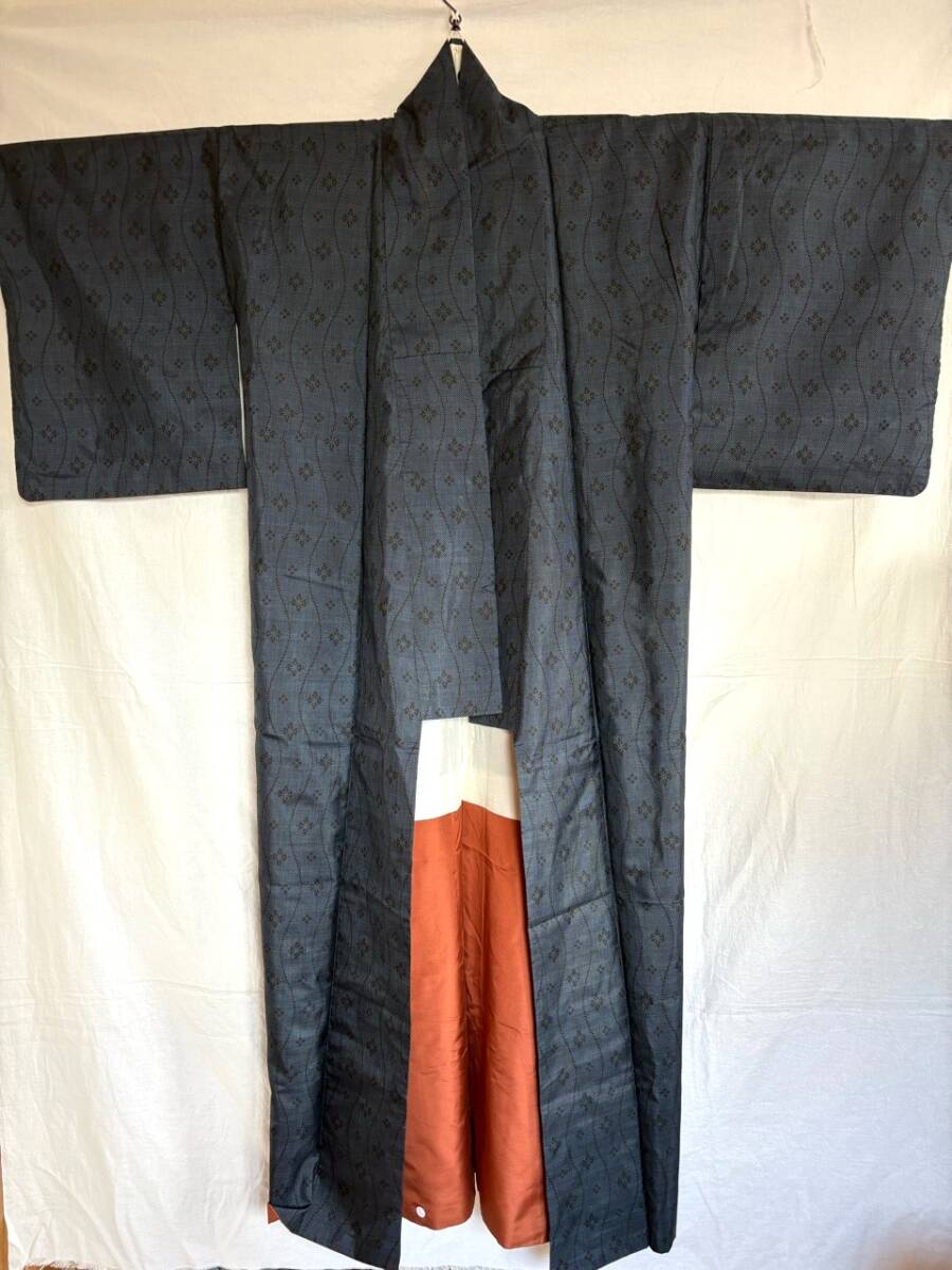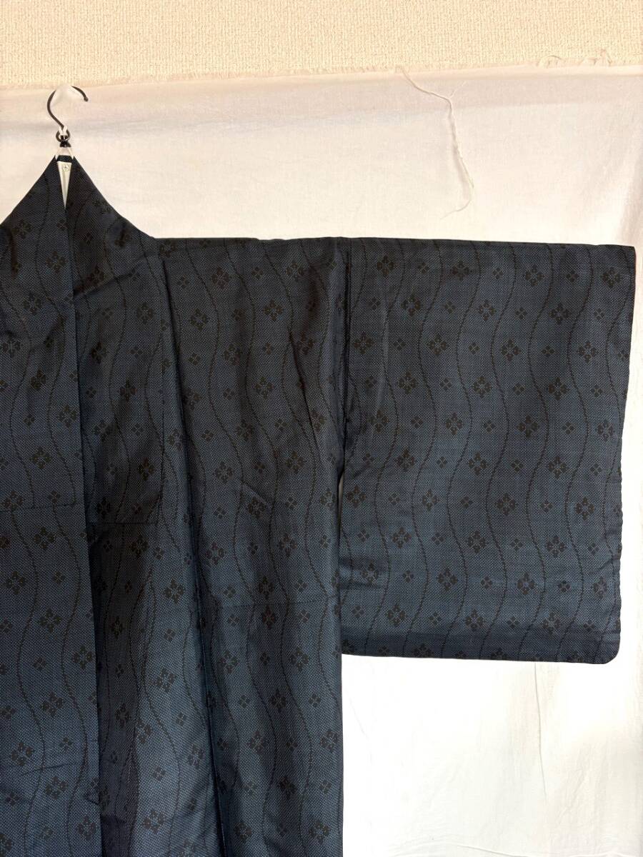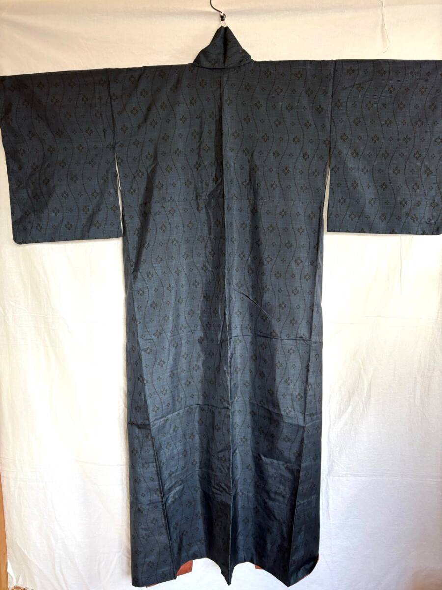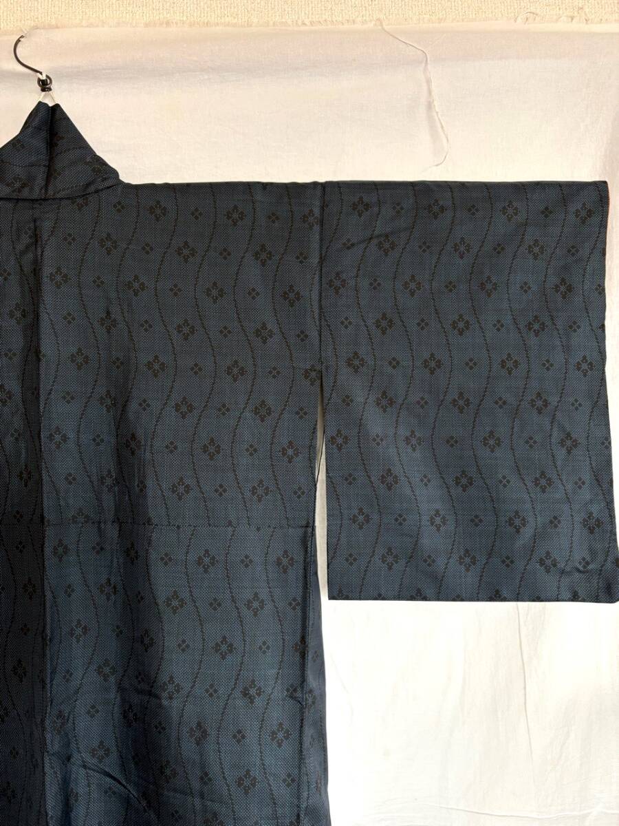 0019★着物*濃紺*紺*武田菱*柄*身丈150cm*和装*和服*和柄*モダン*レトロ*アンティーク*女性*レディース*お得★