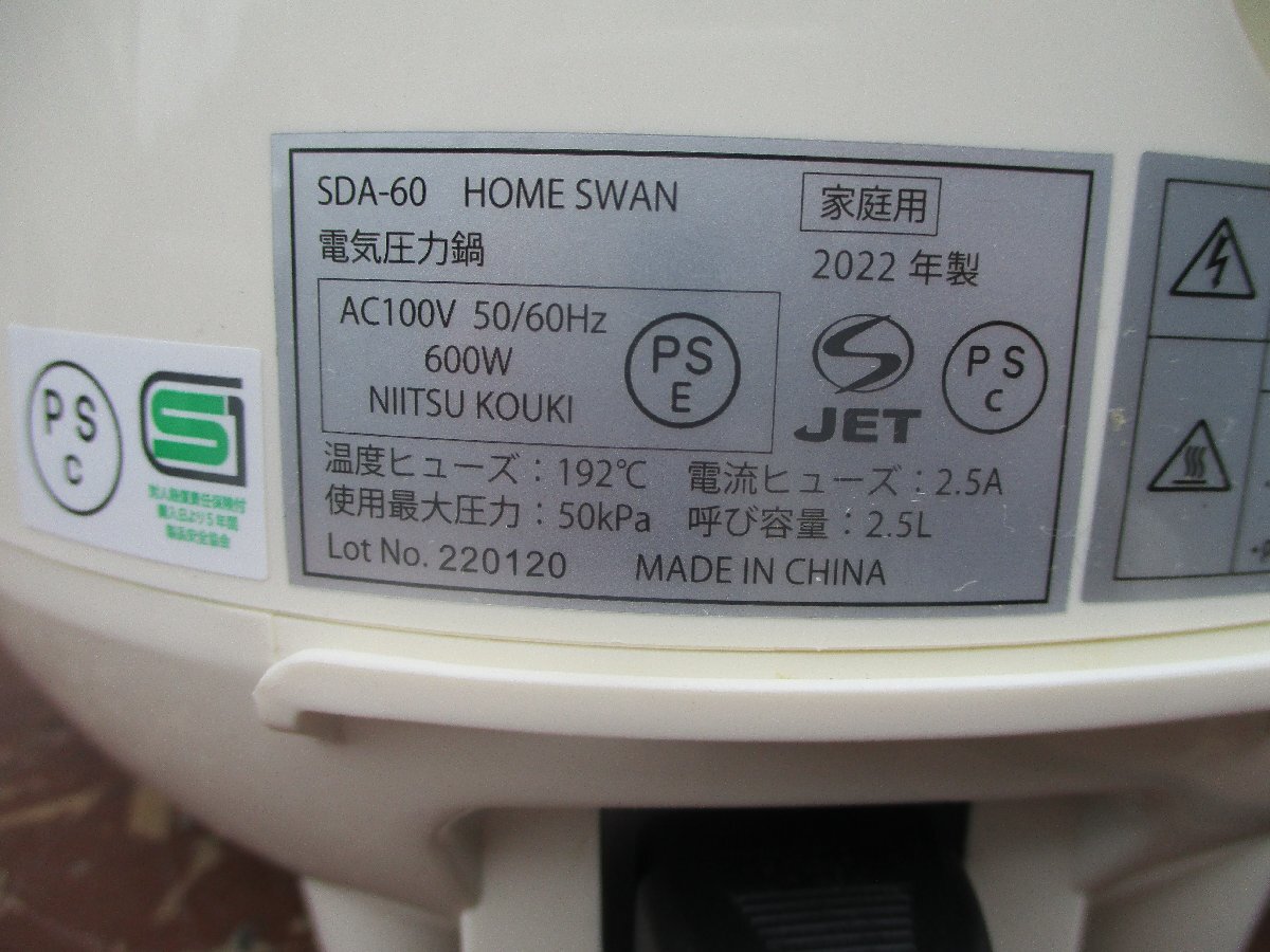 ☆ホームスワン SDA-60 電気圧力鍋 2.5L◆・かんたん、時短で、圧力調理3,991円