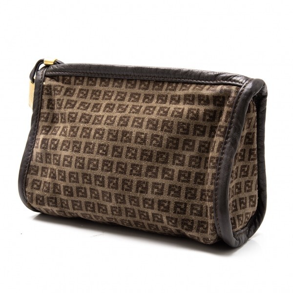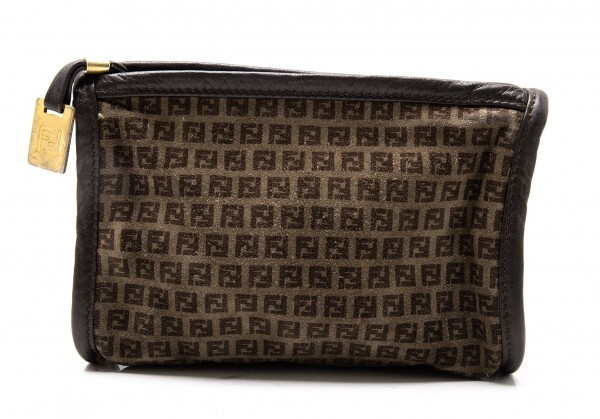 フェンディFENDI ズッカ柄スウェードポーチ 茶 |