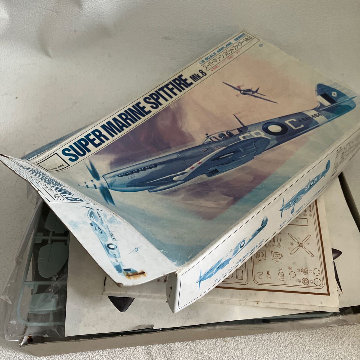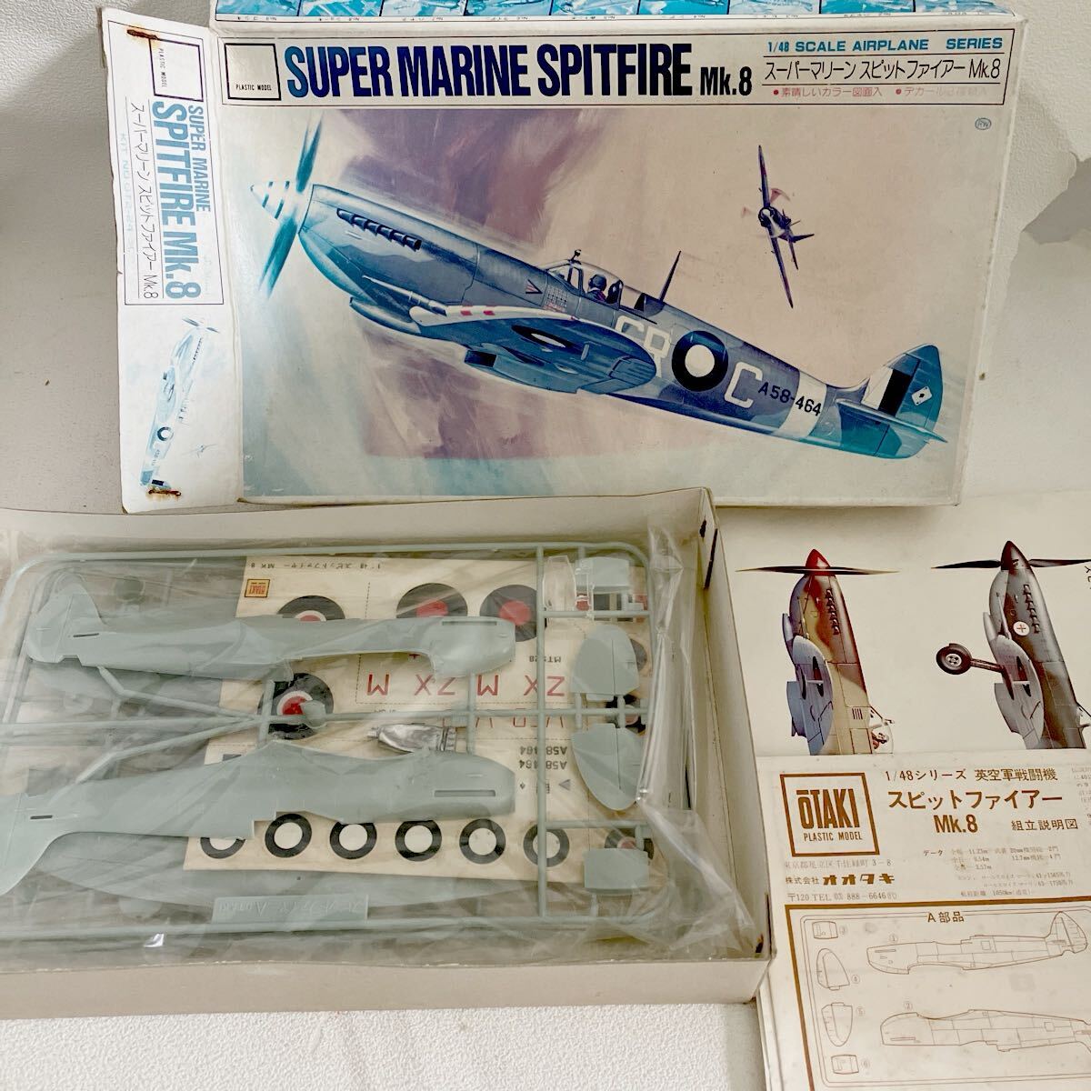 e870-60 プラモデル 未組立 スーパーマリーン スピットファイアー Mk.8 英空軍戦闘機 オオタキ 当時物 箱破れ汚れ有り