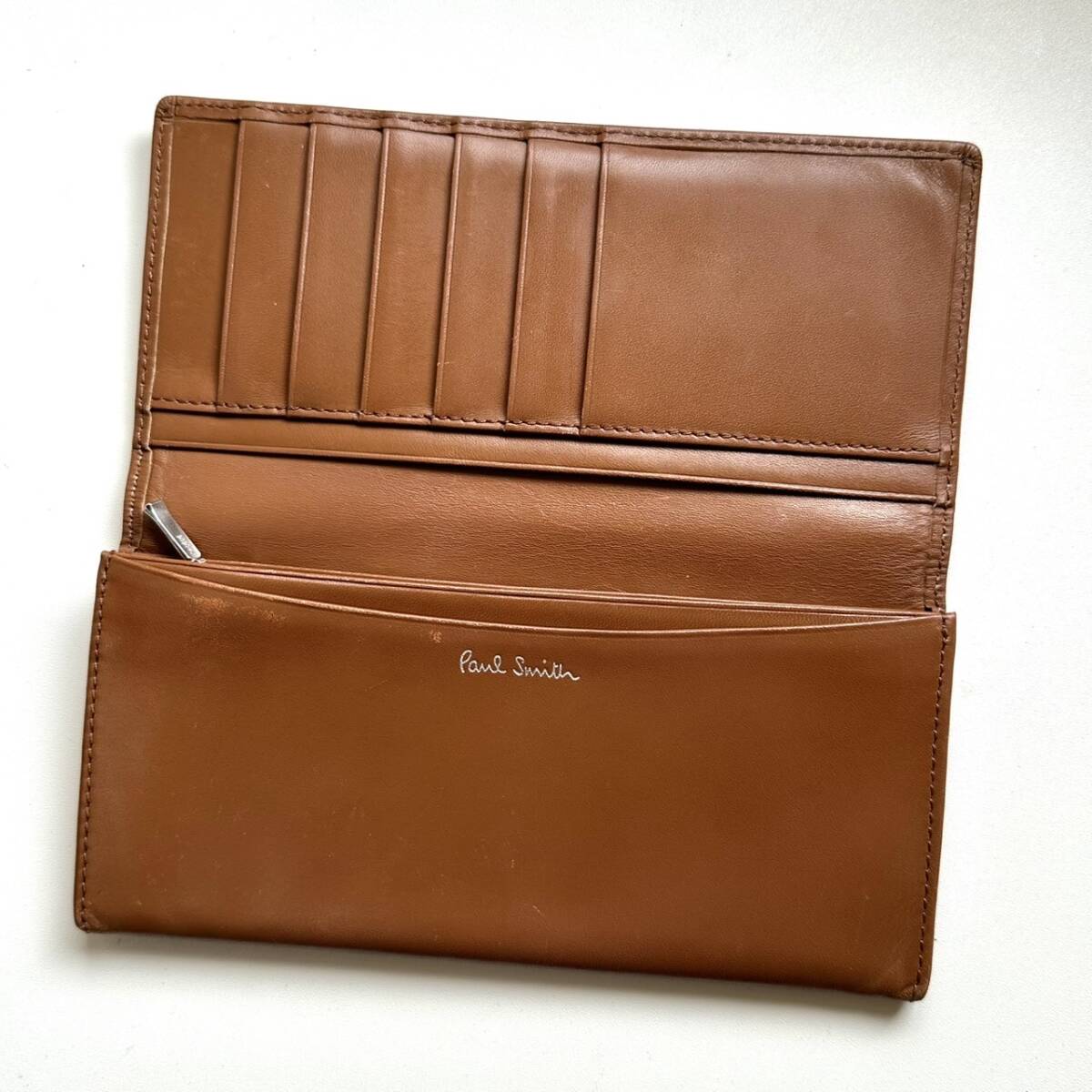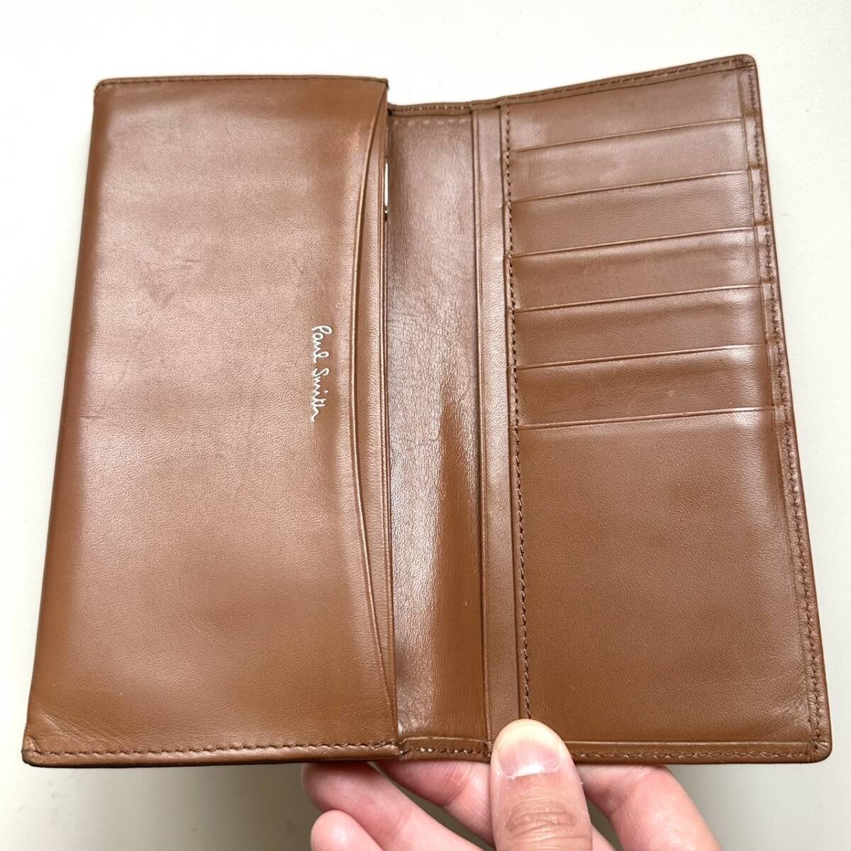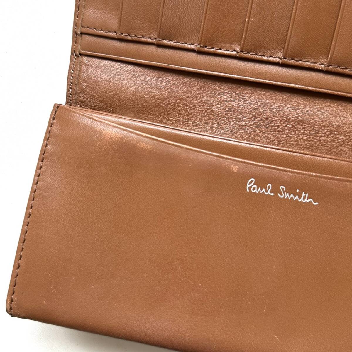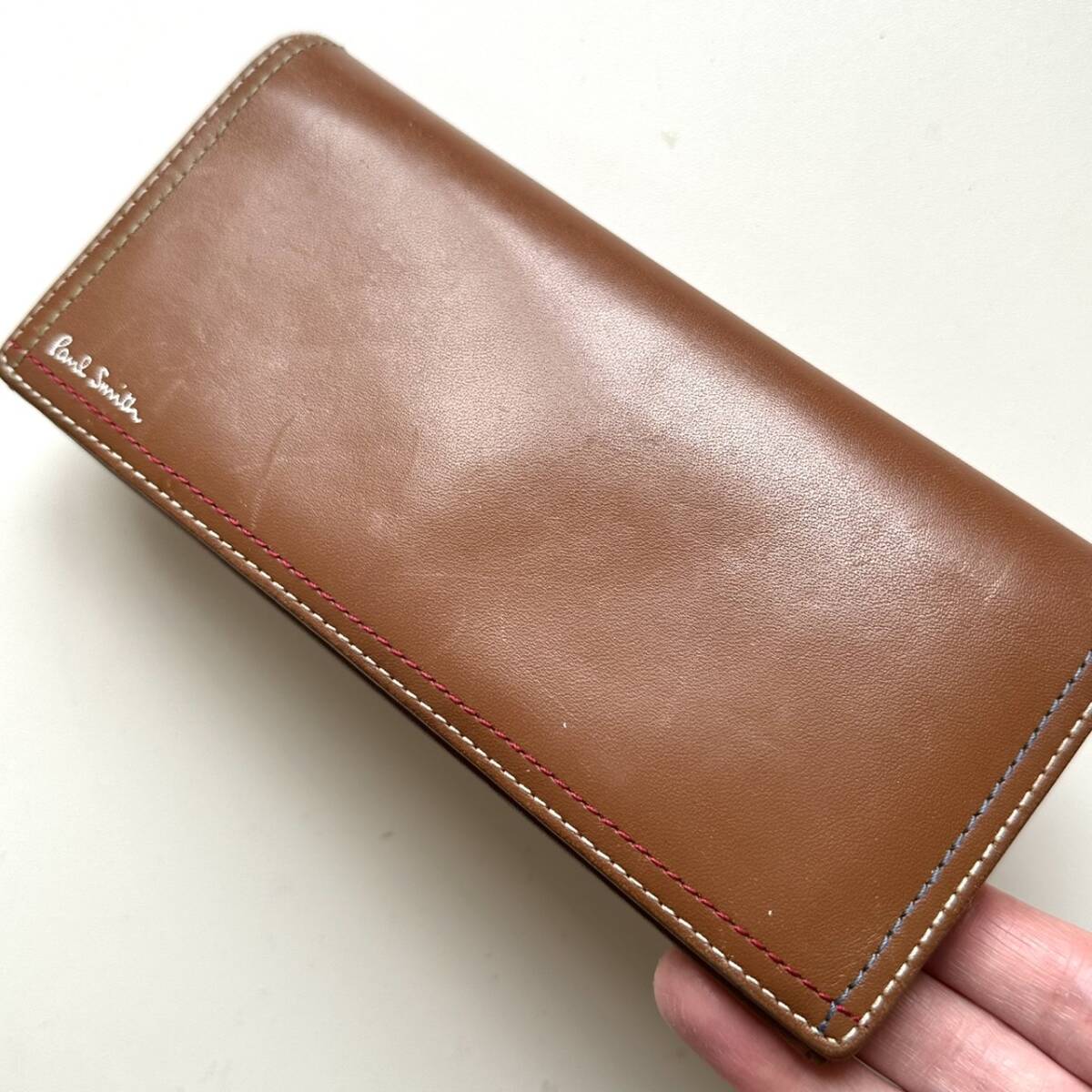 商品説明 | ご覧いただき誠にありがとうございます。 ポールスミス Paul Smith 長財布 カラフルステッチ ライトブラウン になります。 色はライトブラウンです。 革は柔らかいです。 内側に数点目立つ色スレがあります。 また、外側の折り曲がるところにも色スレあります。 ご注意ください。 仕様 縦9cm、横19cm、厚さ2.3cm、小銭入れ、お札入れ、カード入れ×10、フリーポケット×4 |