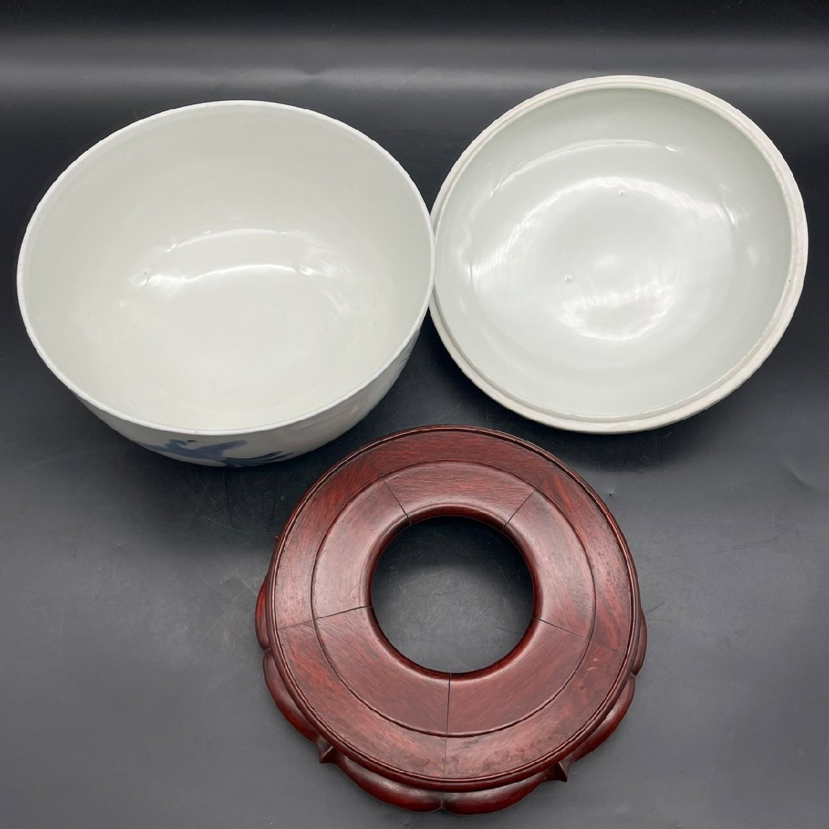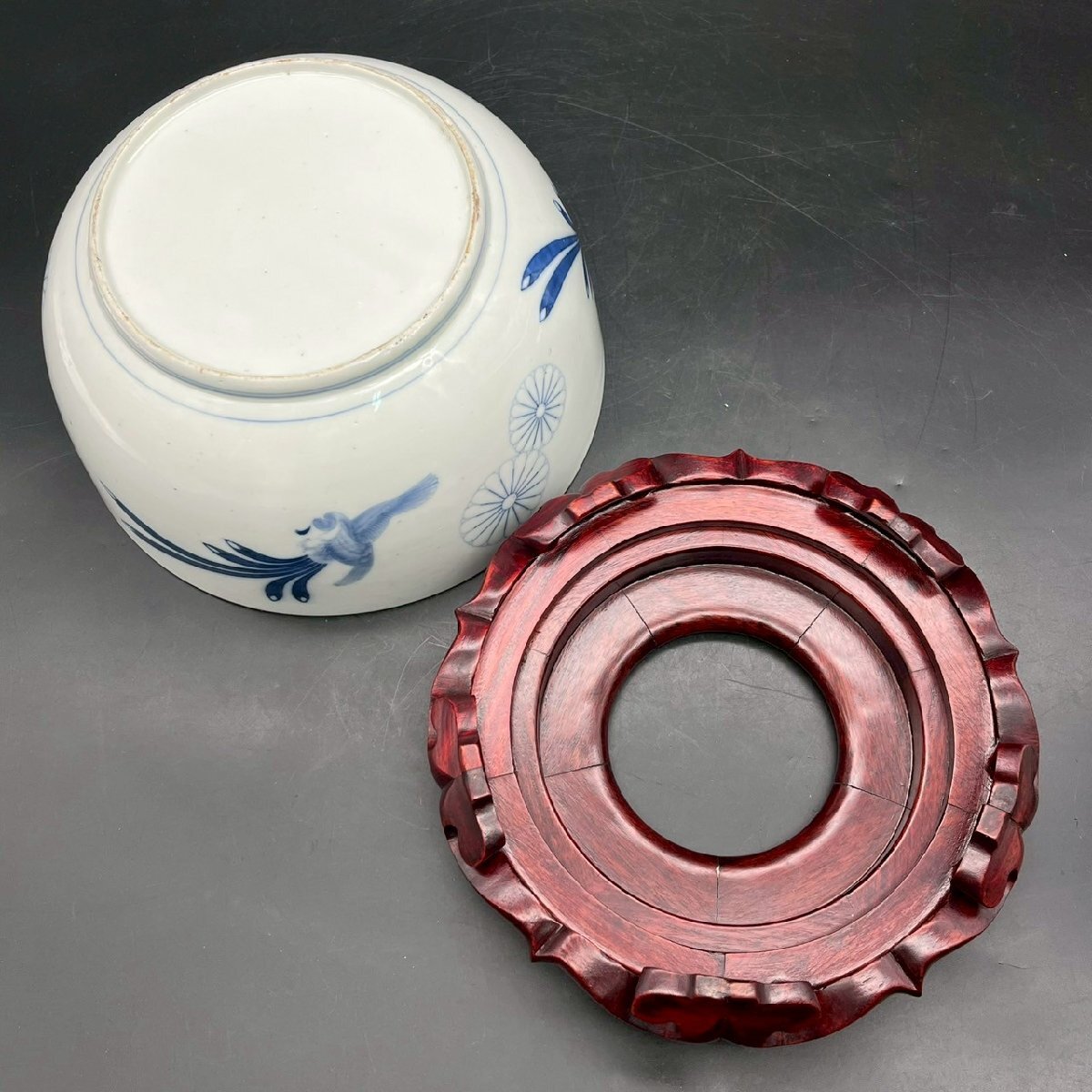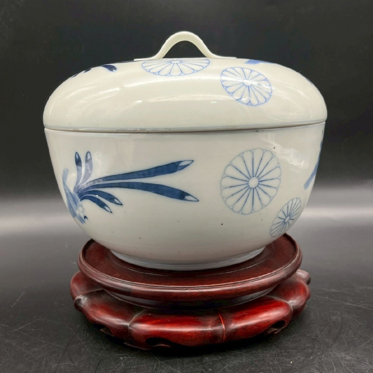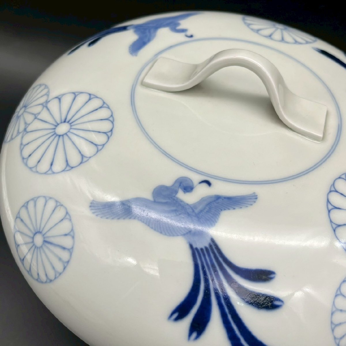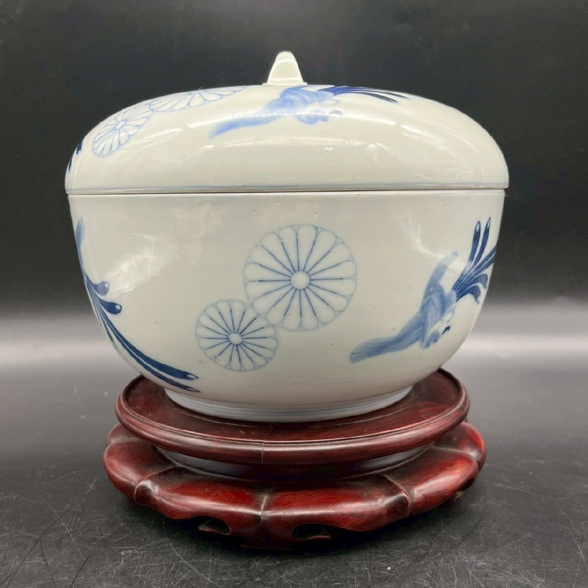 SW0429-6-3 茶碗 台付き 蓋付き お椀 食器 皿 鳥 花 前茶碗 陶器 陶芸 どんぶり 染付け 高さ18㎝ 直径23㎝ 台高さ5.5㎝ 直径21㎝ 100サイズ