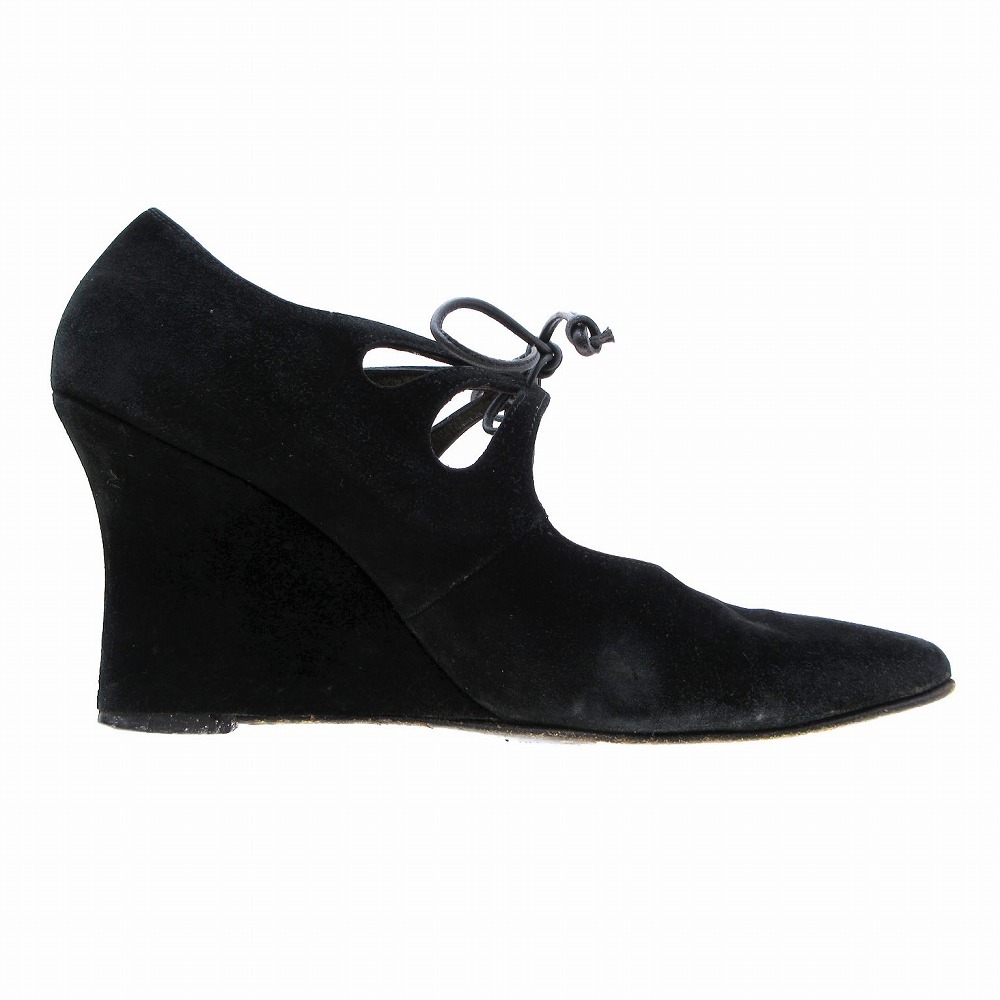| 【Salvatore Ferragamo サルヴァトーレフェラガモ スエード レースアップ ウェッジソール パンプス ブラック サイズ5.5C】 | |