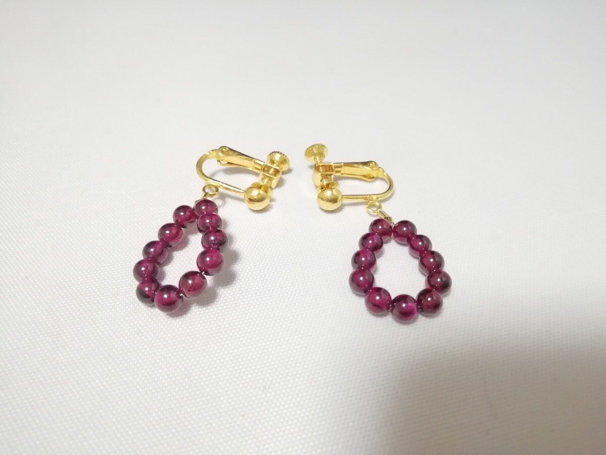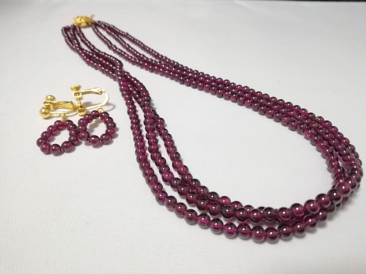 天然丸玉ガ−ネットネックレス&イヤリングセット