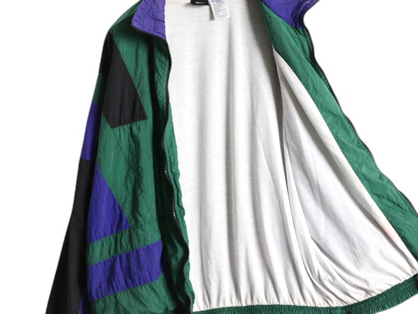 00年代のオールド ナイキ のフルジップ ナイロンジャケットです。 素材は、BODY : 100% NYLON 柔らかい薄手のノンリップナイロン素材 LINING : 65% POLYESTER / 35% COTTON 内側は、柔らかく着心地抜群のポリコンライナー付き 防風性と程よい保温性があり 幅広い季節に着て頂けます。 フロントは、ロゴトップ付きYKKジップを使用 ハイネックタイプ、襟を高く設定することによって 首周りの保温力も高くなっています。 両サイドにジップ式ハンドウォーマーポケット 左胸にワンポイント、スウッシュロゴ刺繍 コーディネートの良いアクセントになる、 好配色、グリーン x ブラック x パープル の トリコカラー 切替 オールドナイキらしい大胆なカラーリングのグッドデザイン 気軽に羽織れる、フルジップ 世界的人気を誇る、オールドナイキ 使い勝手の良い、機能的なデザイン 様々なスタイルに着回しのきく これだけで様になる商品です。 |