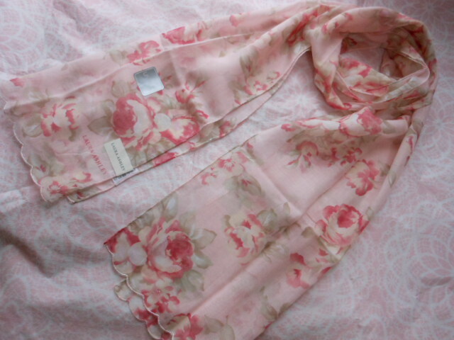 新品 ローラアシュレイ UV ストール 薔薇 ふんわり透け感 紫外線対策に ロングハンカチ